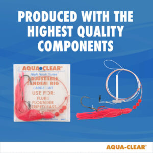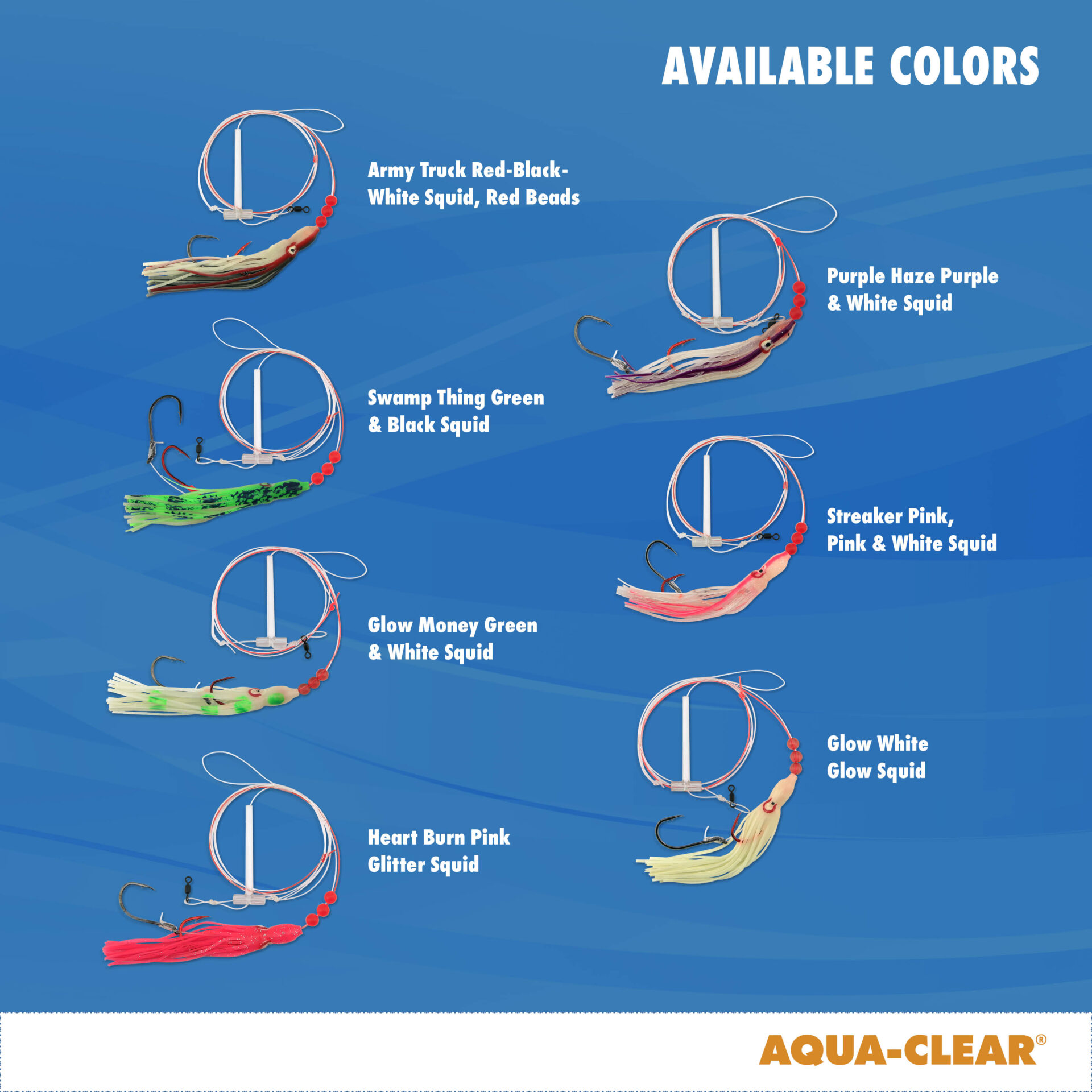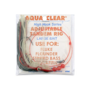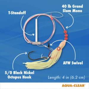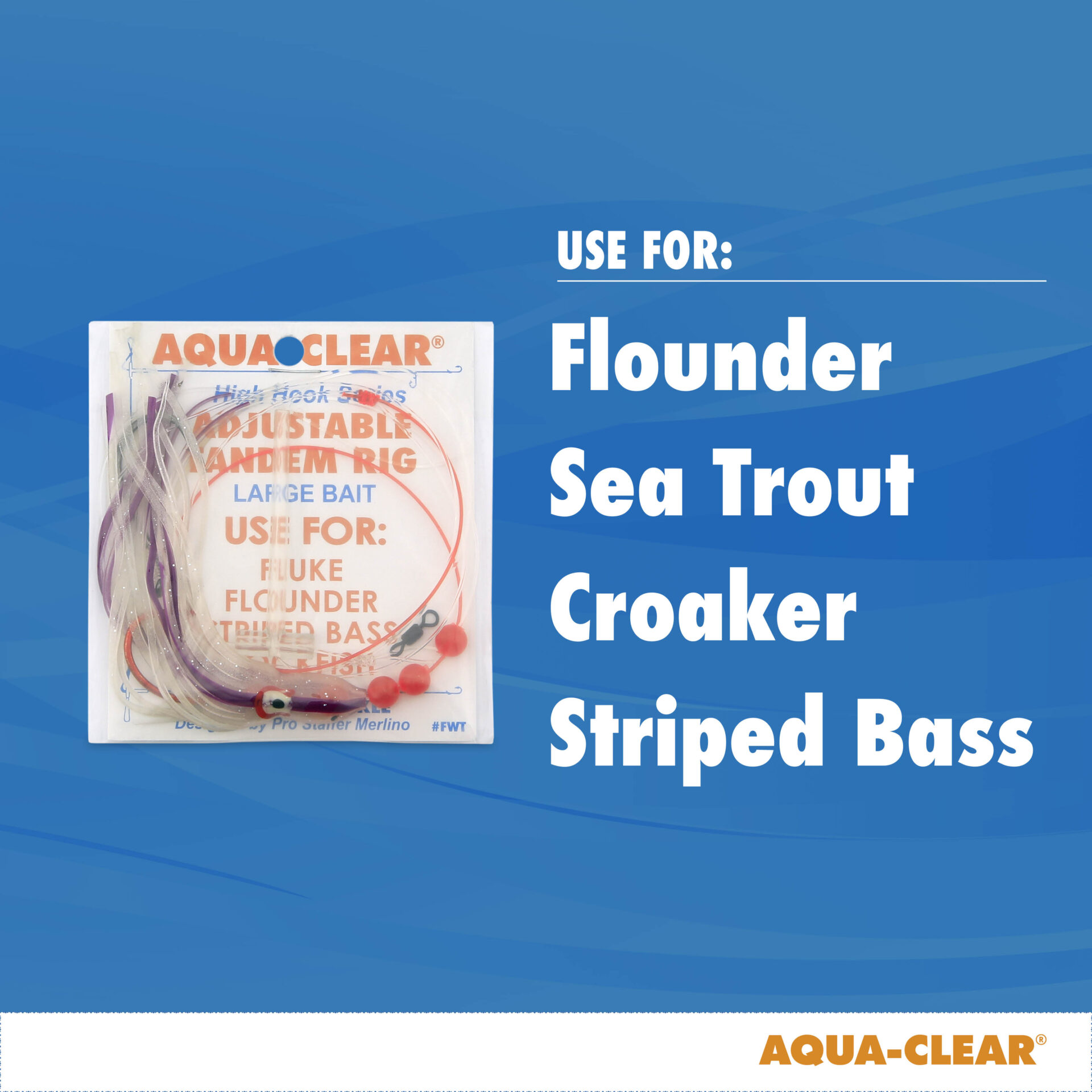 Aqua-Clear, Adj Tandem Rig, Flndr/Fluke/SeaTrout/Croaker, 5/0 Blk Nckl Oct Hook, AFW Swv, 40 lb/18.1 kg GS Mono, T-Standoff, 4 in/6.2 cm Army Truck Red-Blk-Wht Squid, Red Bds