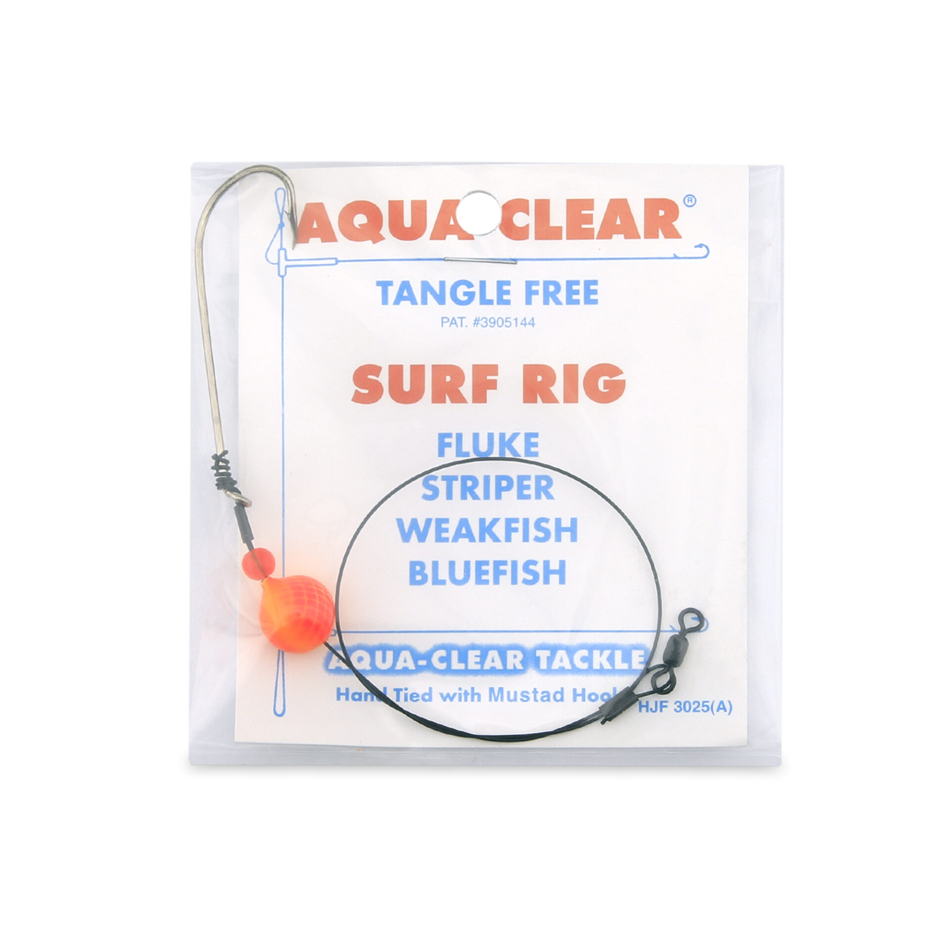 Aqua-Clear, Bluefish Wire Surf Rig, Bluefish / Striped Bass / Drum Fish, 3/0 XL Hook, 45 lb / 20.4 kg Surflon Black Wire, Orange Float