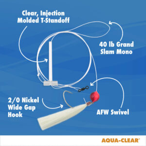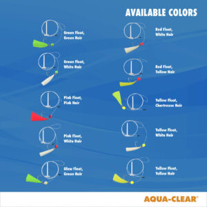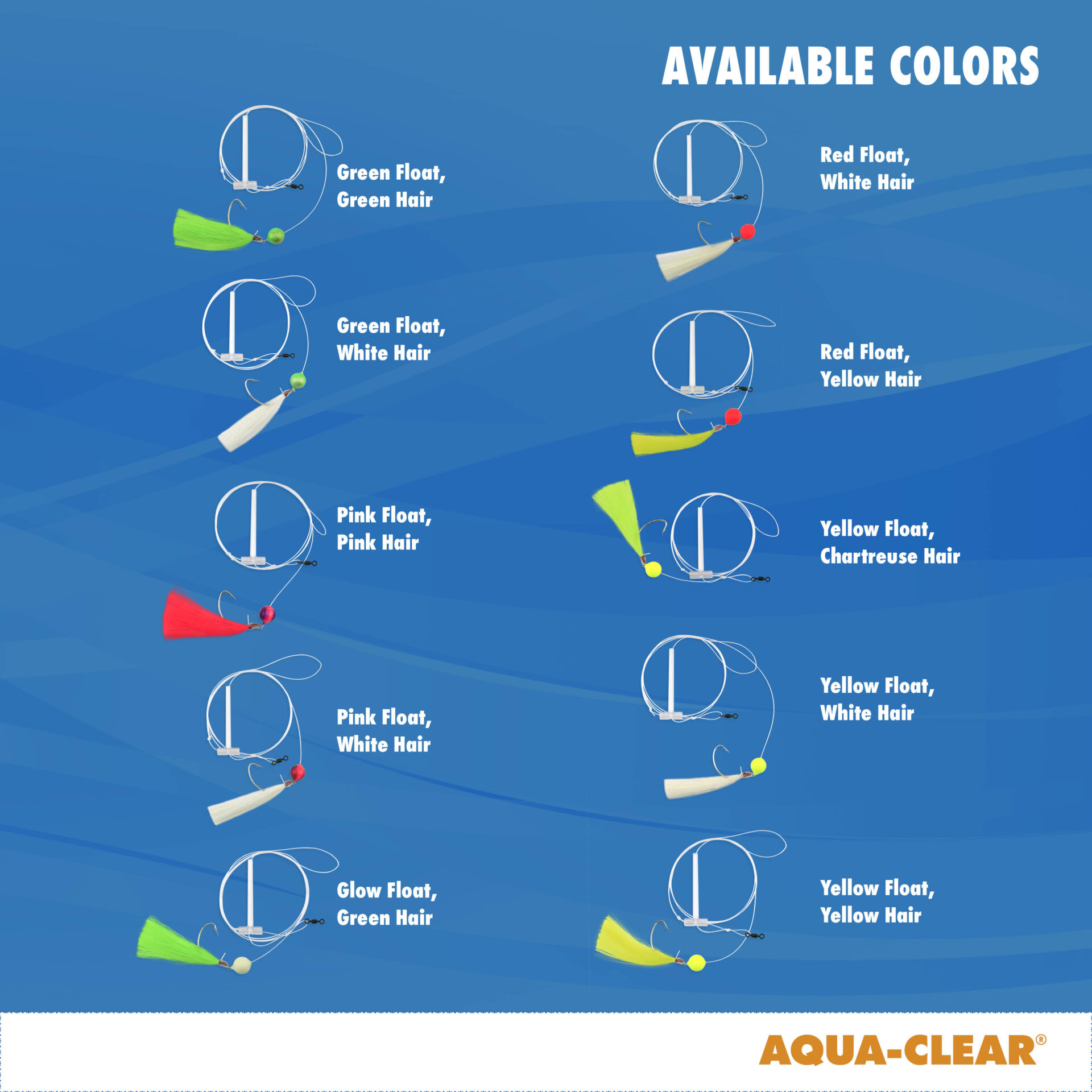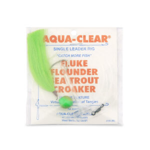 Aqua-Clear, Float & Hair Single Rig, Flounder/Fluke/Sea Trout/Croaker, 2/0 Nickel Wide Gap Hook, AFW Swivel, 40 lb / 18.1 kg GS Mono, T-Standoff, Green Float, Green Hair