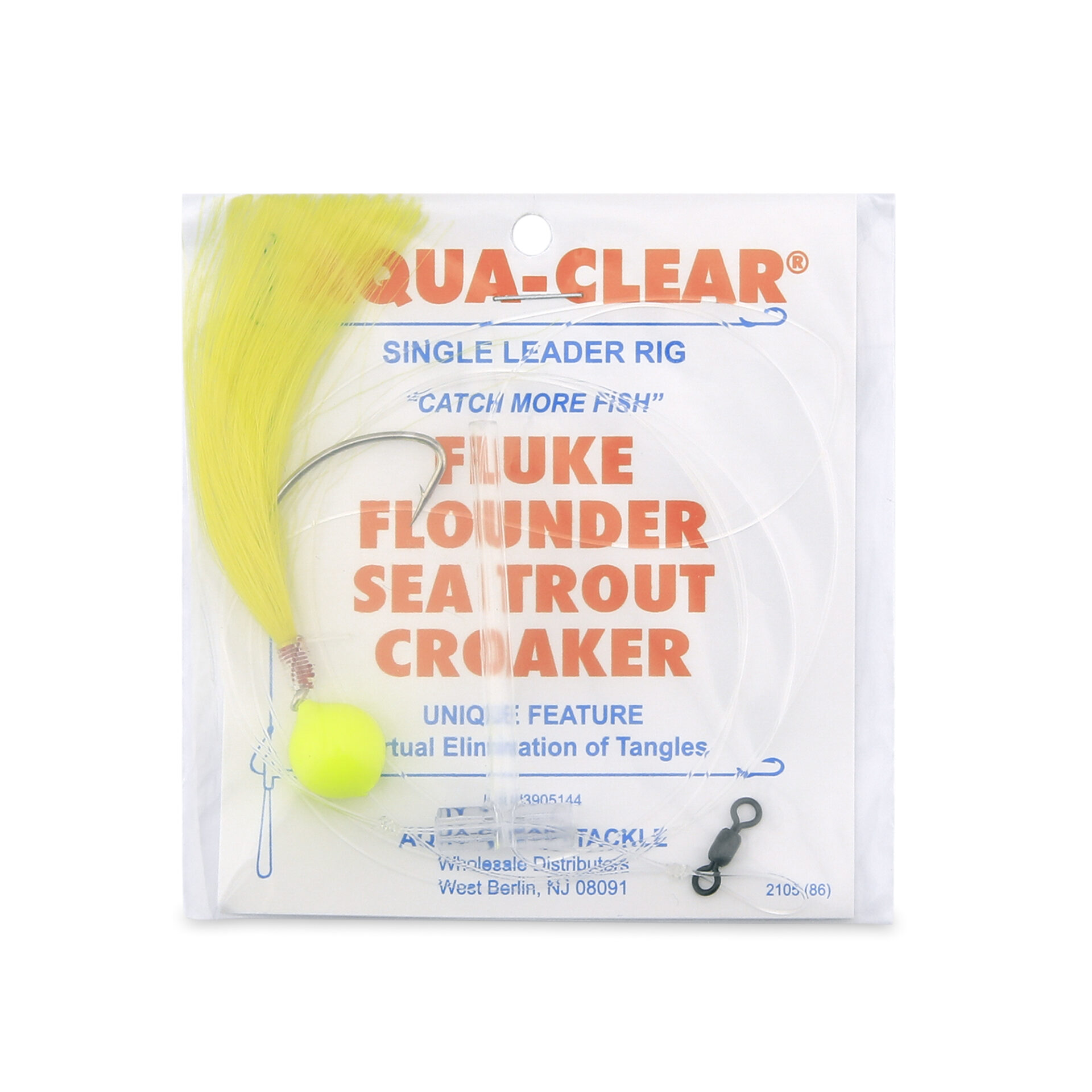 Aqua-Clear, Float & Hair Single Rig, Flounder/Fluke/Sea Trout/Croaker, 2/0 Nickel Wide Gap Hook, AFW Swivel, 40 lb / 18.1 kg GS Mono, T-Standoff, Yellow Float, Yellow Hair