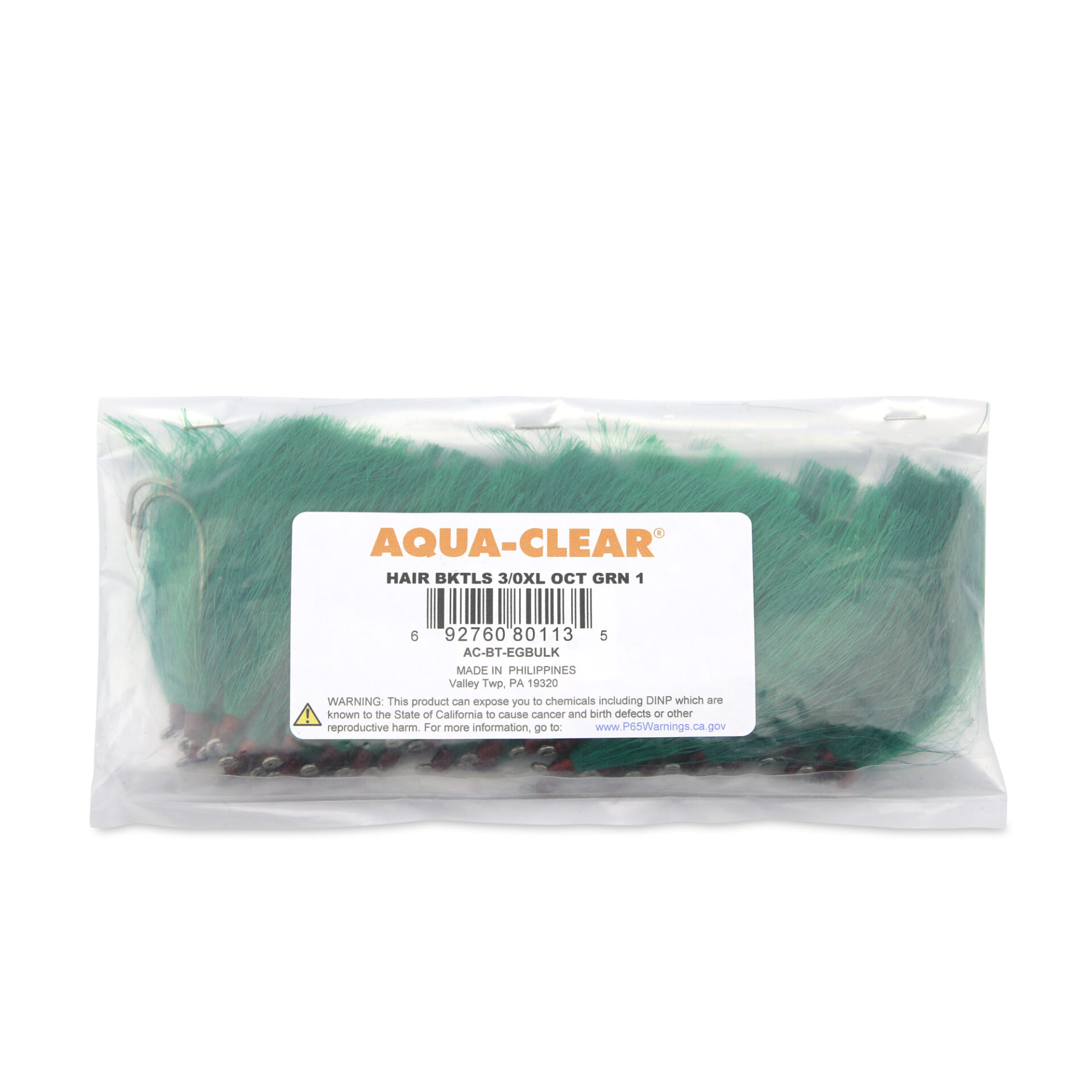 Aqua-Clear, Hair Buck Tails, Flounder / Fluke / Sea Trout / Weakfish / Croaker, 3/0 XL Nickel Octopus Hook, Green Hair, 50 pc
