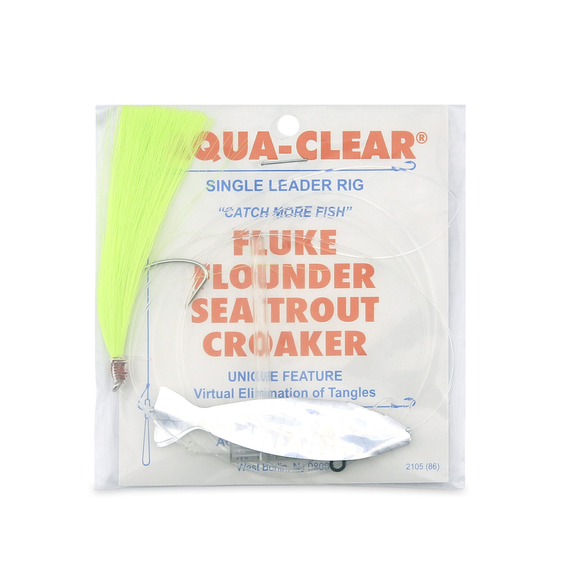 Aqua-Clear, Hair Teaser Rig, Flounder/Fluke/Sea Trout/Weakfish/Croaker, 3/0 Nickel Wide Gap Hook, AFW Swivel, 40 lb/18.1 kg GS Mono, T-Standoff, Chrtrse Hair, SilvrHolo MinnowAvailability: In stock
