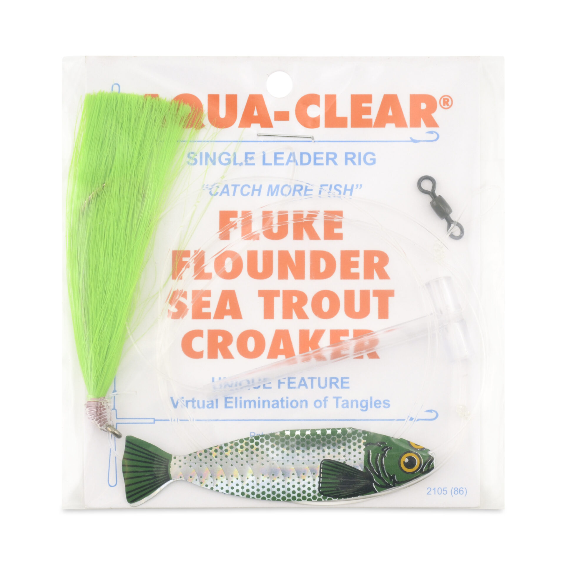 Aqua-Clear, Hair Teaser Rig, Flounder/Fluke/Sea Trout/Weakfish/Croaker, 3/0 Nickel Wide Gap Hook, AFW Swivel, 40 lb/18.1 kg GS Mono, T-Standoff, Green Hair, Green Holo Minnow