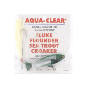 Aqua-Clear, Hair Teaser Rig, Flounder/Fluke/Sea Trout/Weakfish/Croaker, 3/0 Nickel Wide Gap Hook, AFW Swivel, 40 lb/18.1 kg GS Mono, T-Standoff, White Hair, Green Holo MinnowAvailability: In stock