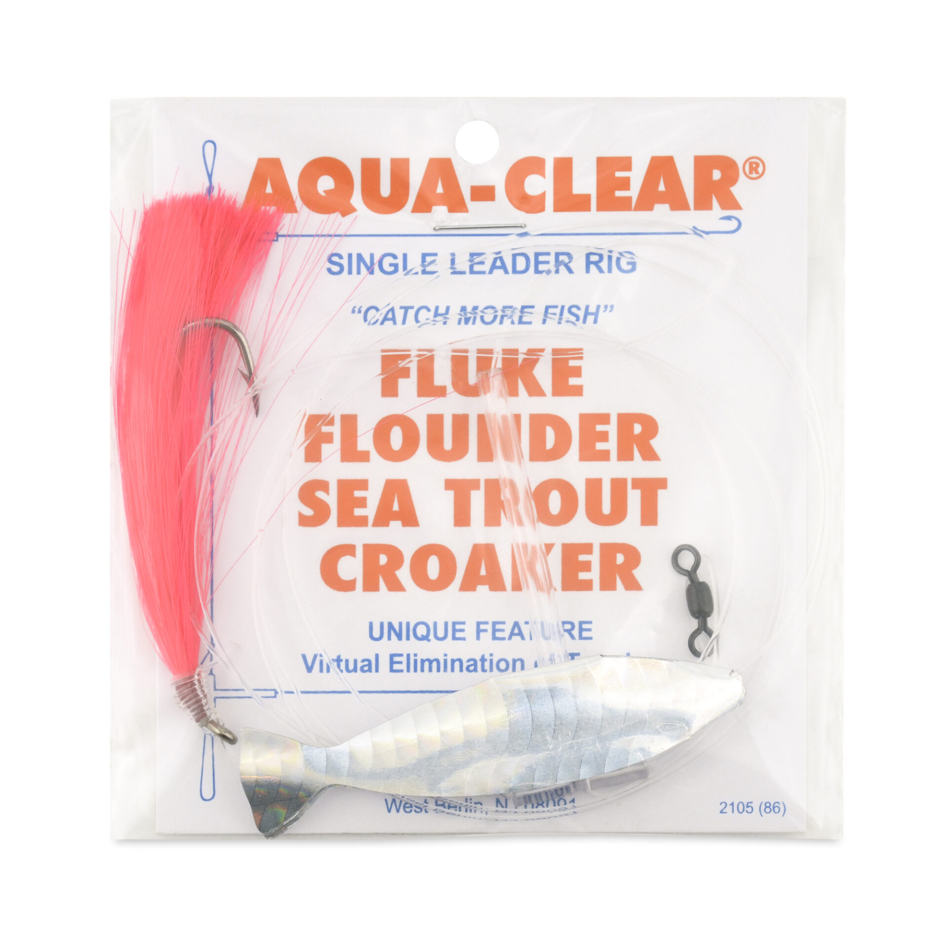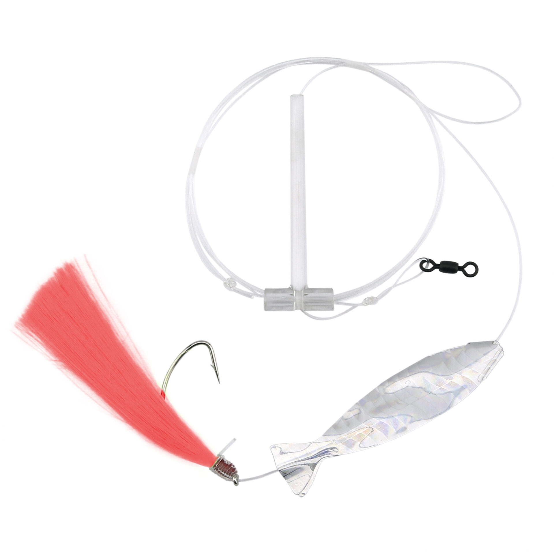 Aqua-Clear, Hair Teaser Rig, Flounder / Fluke / Sea Trout / Weakfish / Croaker, 3/0 XL Nickel Hook, AFW Swivel, 40 lb / 18.1 kg Grand Slam Mono, T-Standoff, Pink HairAvailability: In stock