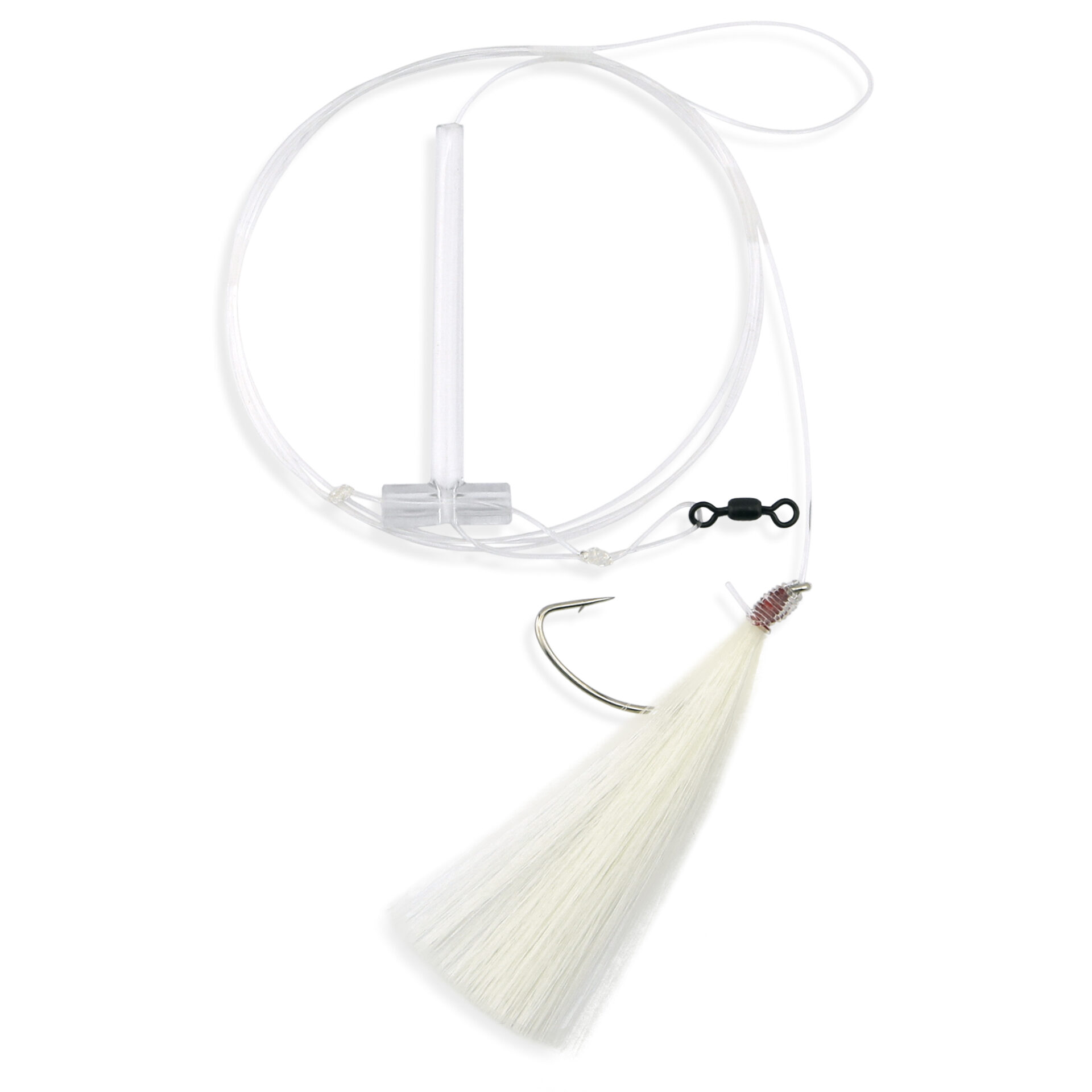 Aqua-Clear, Hair Teaser Rig, Flounder / Fluke / Sea Trout / Weakfish / Croaker, 3/0 XL Nickel Hook, AFW Swivel, 40 lb / 18.1 kg Grand Slam Mono, T-Standoff, White HairAvailability: In stock