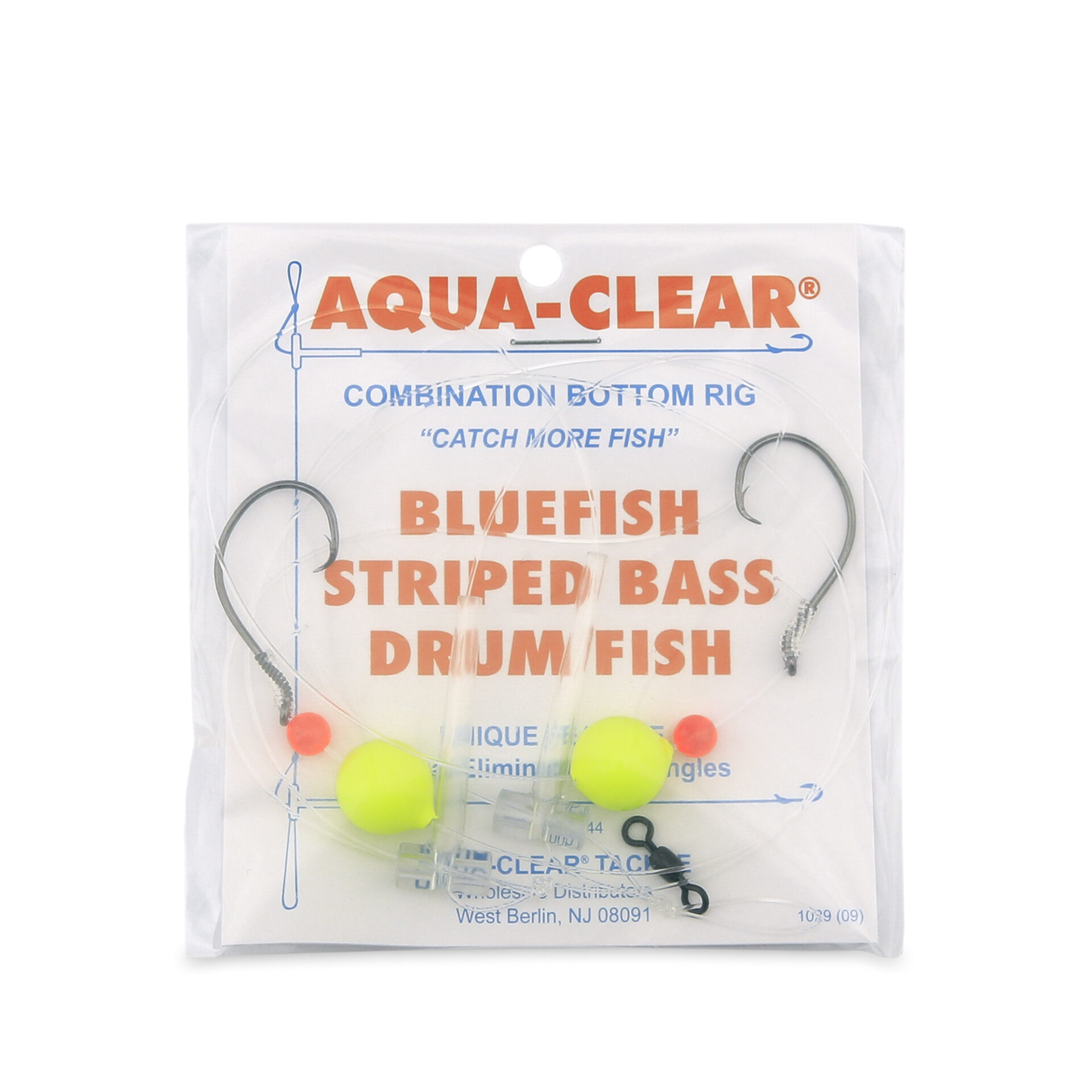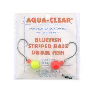 Aqua-Clear, Hi-Lo Bluefish Rig, Bluefish/Striped Bass/Rockfish/Drum, 3/0 Mustad Blk Nckl Circle Hook, AFW Swivel, 60 lb / 27.2 kg GS Mono, T-Standoff, Chartreuse & Red Floats