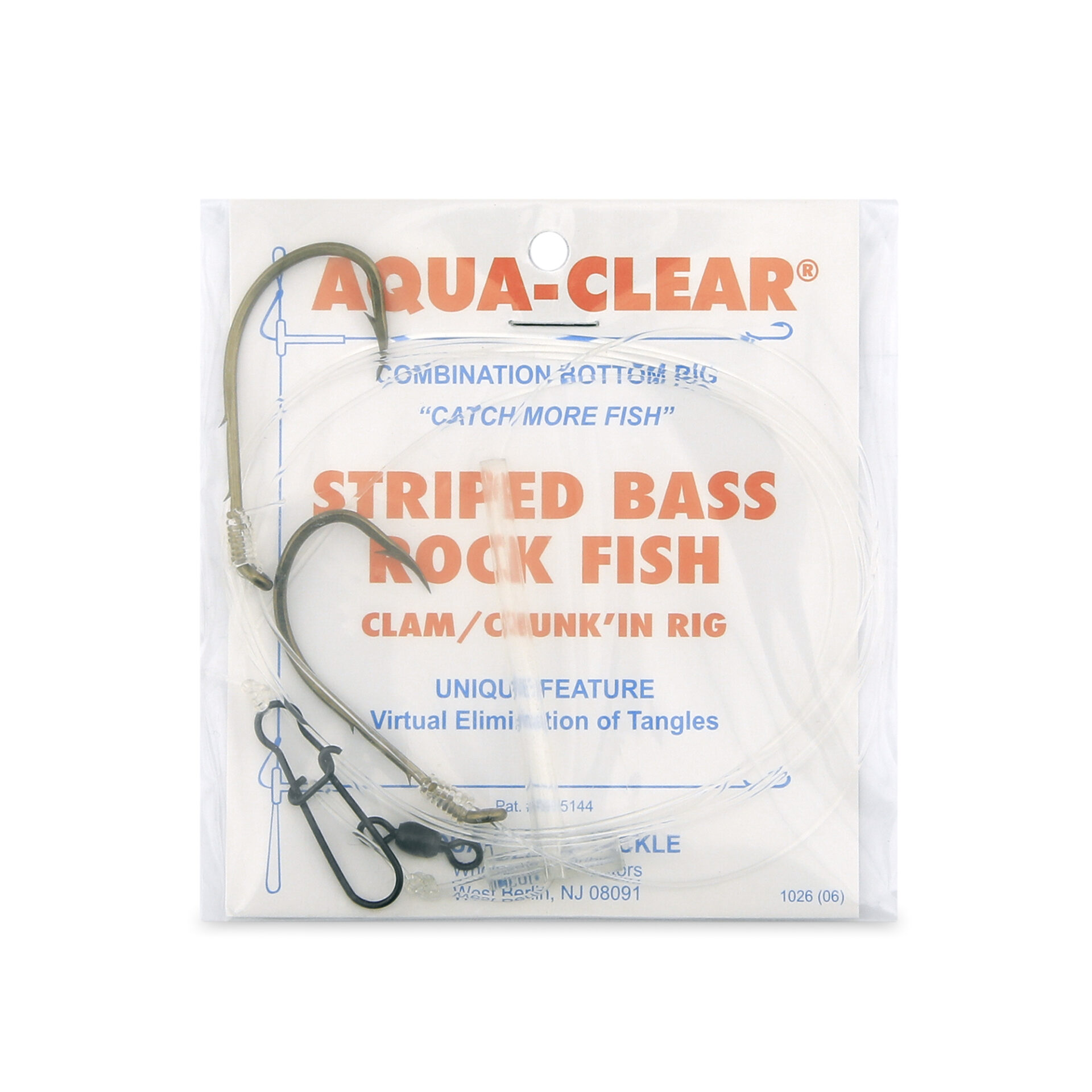Aqua-Clear, Hi-Lo Clam Tandem Rig, Striped Bass / Rockfish / Drum, 6/0 Bait Holder Hooks, AFW Swivel, 60 lb / 27.2 kg Grand Slam Mono 36 in / 92.4 cm, T-Standoff
