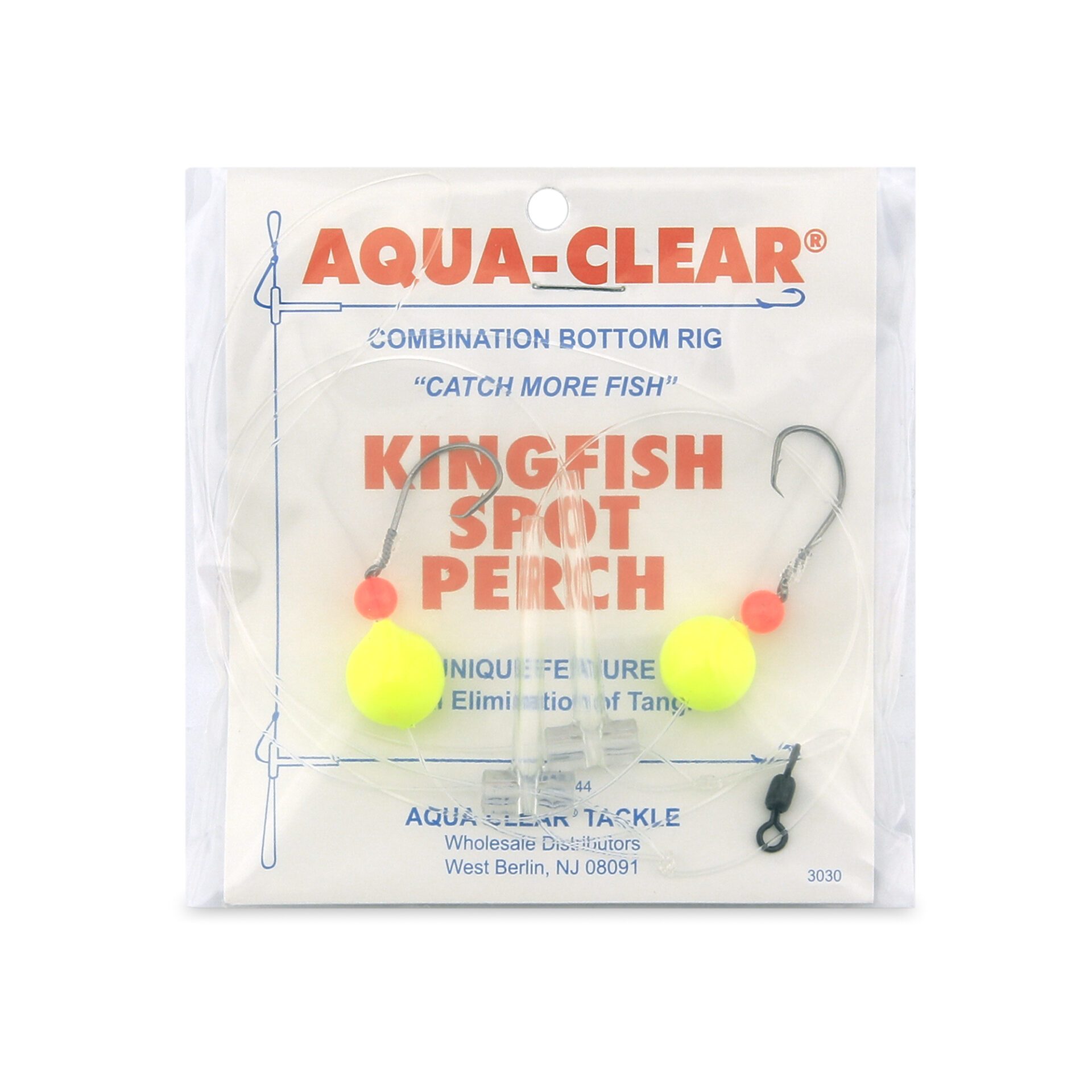 Aqua-Clear, Hi-Lo Combo Rig, Kingfish / Spot / Perch, Size 4 Black Nickel Octopus Hooks, AFW Swivel, 25 lb / 11.3 kg Grand Slam Mono, T-Standoff, Red Beads, Chartreuse Floats