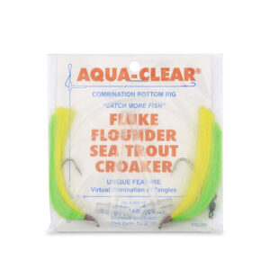 Aqua-Clear, Hi-Lo Mixed Color Hair Teaser Rig, Flounder/Fluke/Sea Trout/Croaker, 3/0 Nickel WideGap Hook, AFW Swivel, 40 lb / 18.1 kg GS Mono, T-Standoff, Green & Yellow HairAvailability: In stock