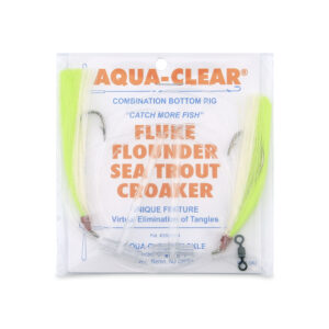Aqua-Clear, Hi-Lo Mixed Color Hair Teaser Rig, Flounder/Fluke/SeaTrout/Croaker, 3/0 Nickel Octo Hook, AFW Swivel, 40 lb / 18.1 kg GS Mono, T-Standoff, Chrtrse & White HairAvailability: In stock