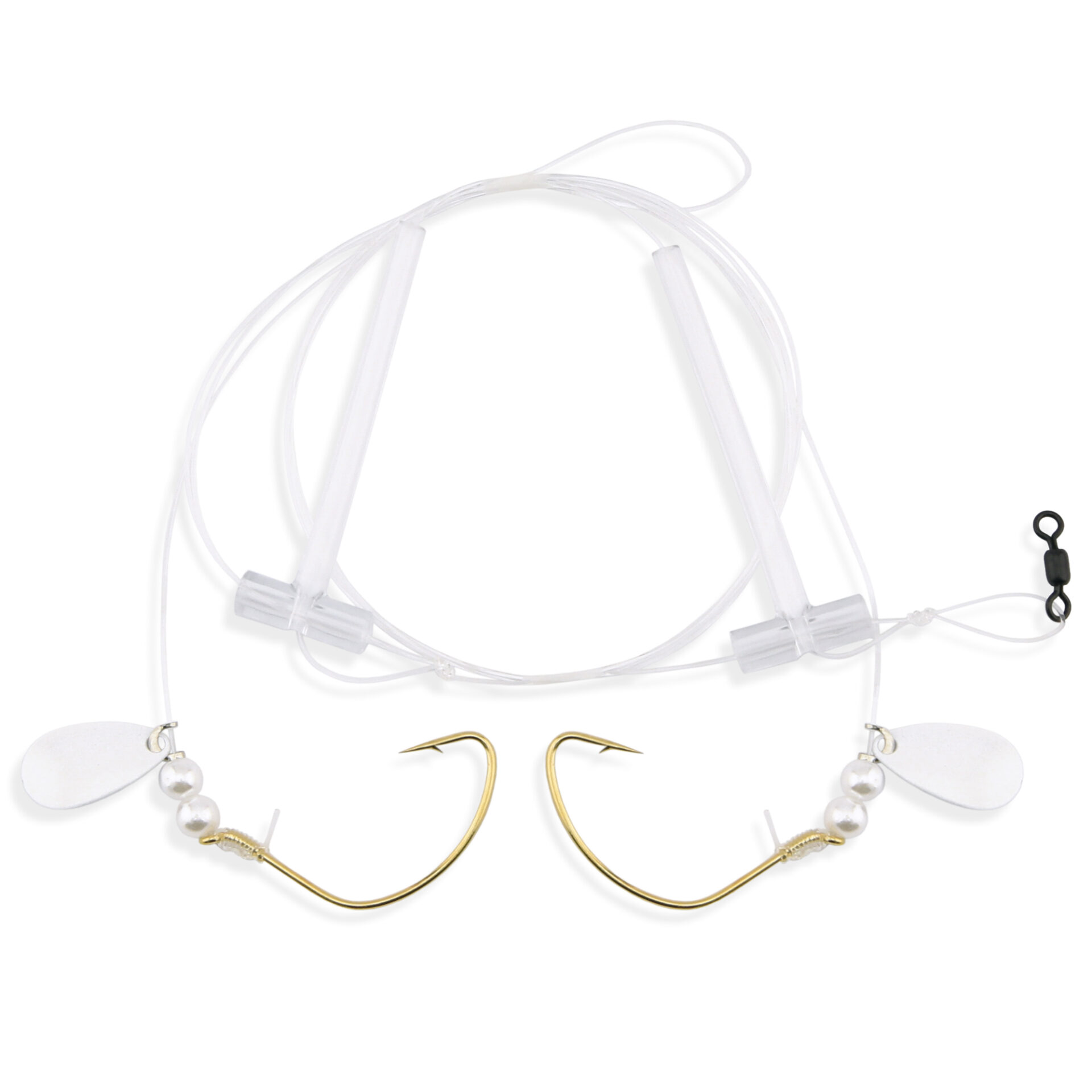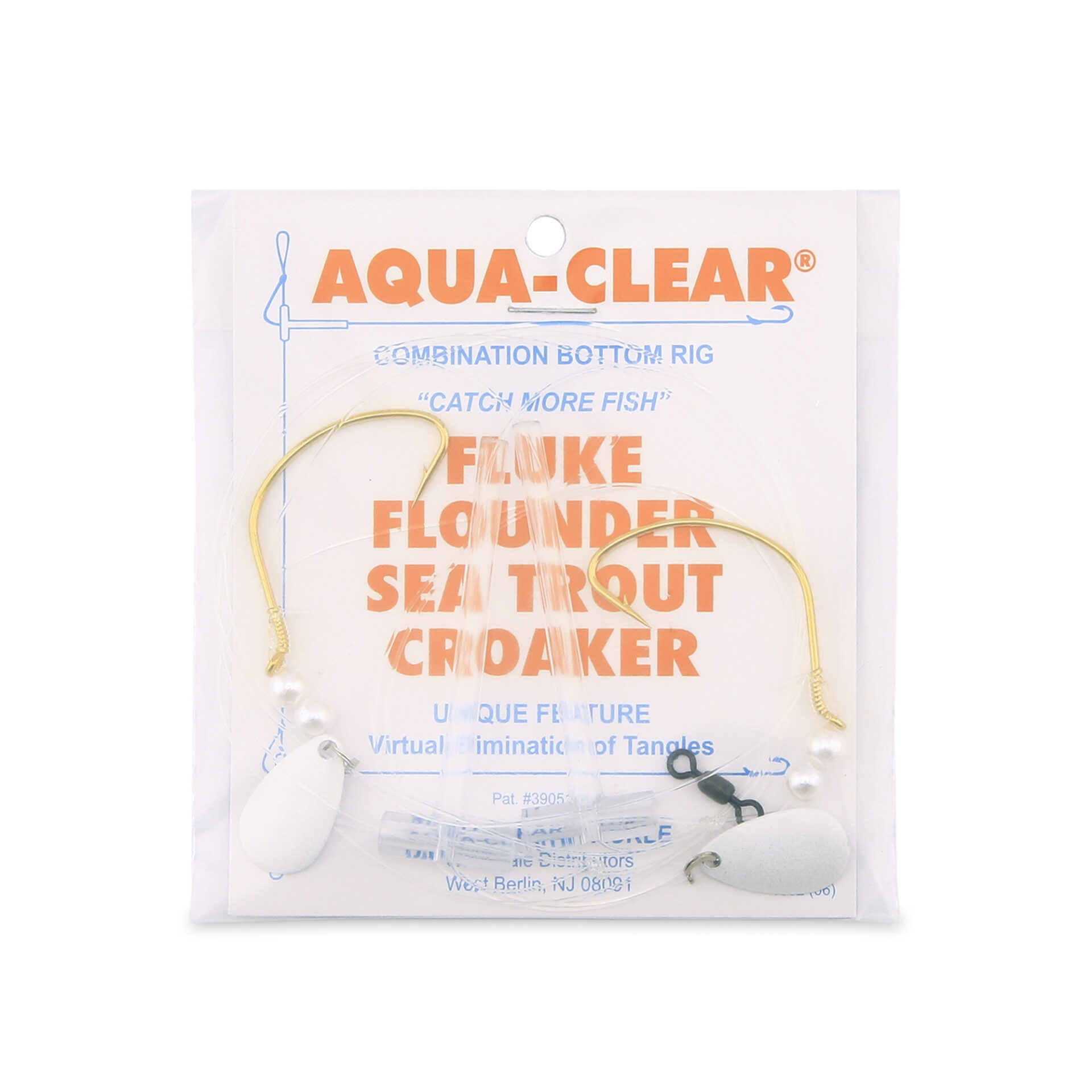Aqua-Clear, Hi-Lo Pearl & Spinner Rig, Flounder/Fluke/SeaTrout/Croaker, 2/0 Gold Color Wide Gap Hook, AFW Swivel, 40 lb / 18.1 kg GS Mono, T-Standoff, Pearls & Spinners