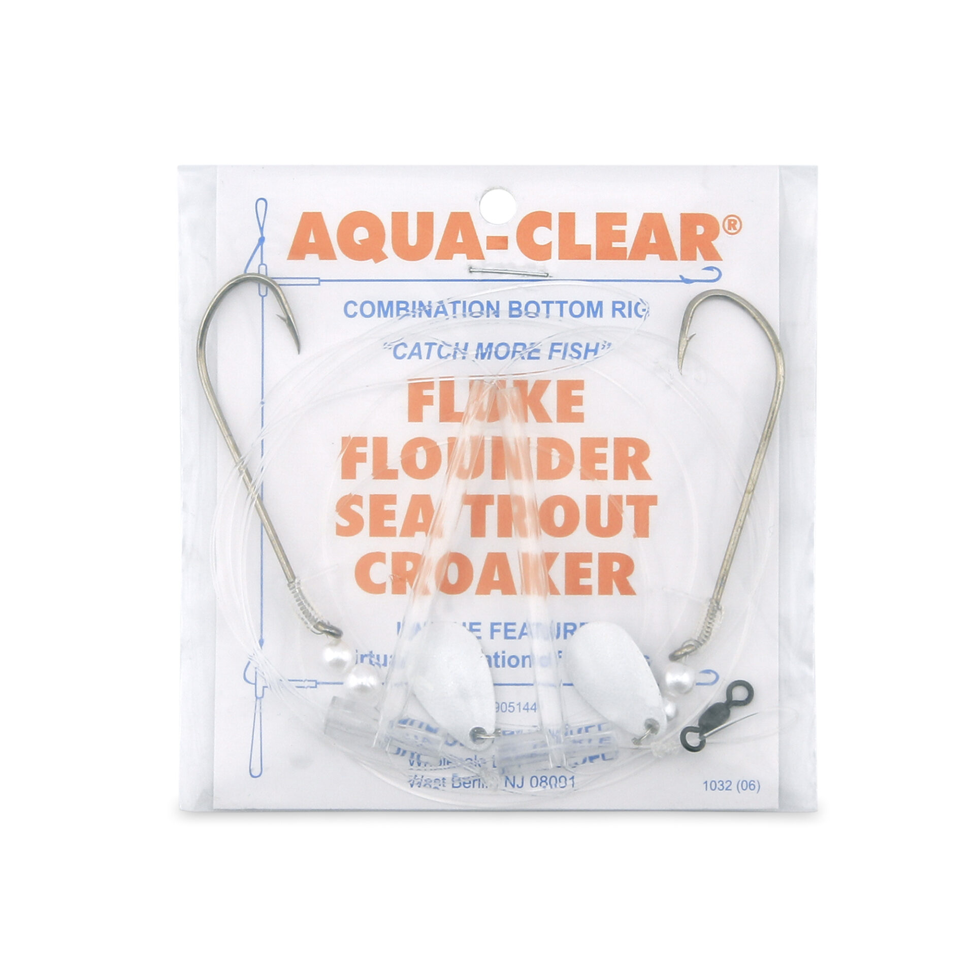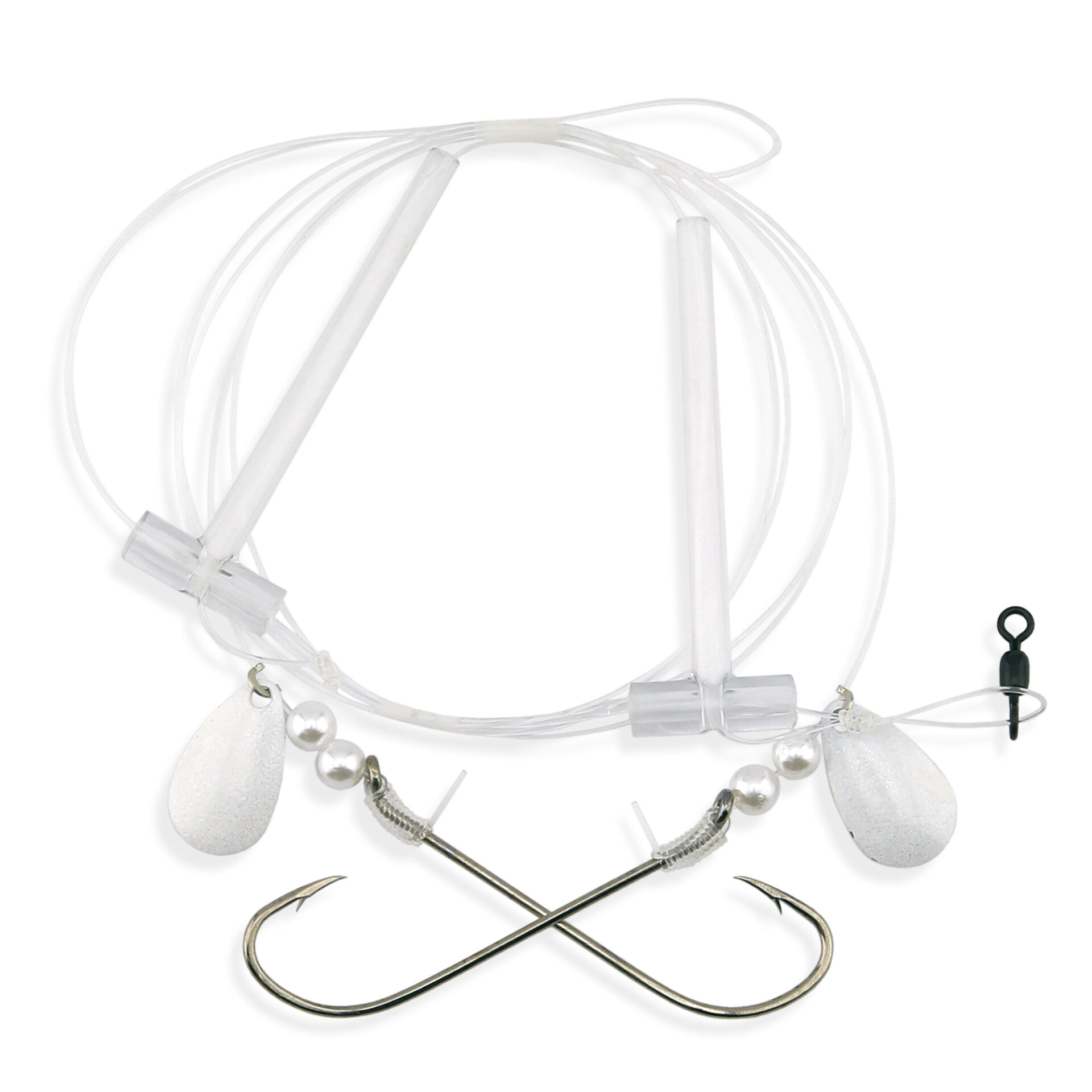Aqua-Clear, Hi-Lo Pearl & Spinner Rig, Flounder/Fluke/SeaTrout/Croaker, 3/0 XL Nickel Hook, AFW Swivel, 40 lb / 18.1 kg GS Mono, T-Standoff, Pearl & Spinner Top & BottomAqua-Clear, Hi-Lo Pearl & Spinner Rig, Flounder/Fluke/SeaTrout/Croaker, 3/0 XL Nickel Hook, AFW Swivel, 40 lb / 18.1 kg GS Mono, T-Standoff, Pearl & Spinner Top & Bottom