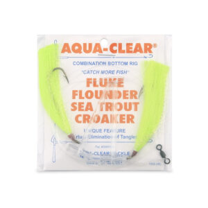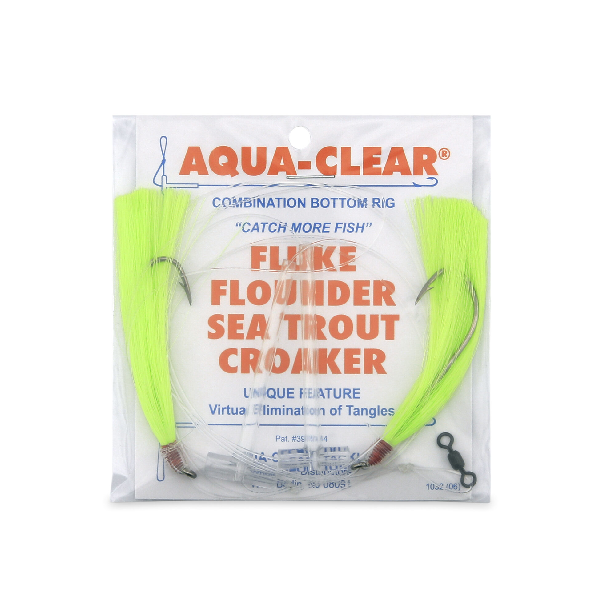 Aqua-Clear, Hi-Lo Solid Color Hair Teaser Rig, Flounder/Fluke/SeaTrout/Weakfish/Croaker, 3/0 Nickel Octopus Hook, AFW Swivel, 40 lb / 18.1 kg GS Mono, T-Standoff, Chrtrse Hair