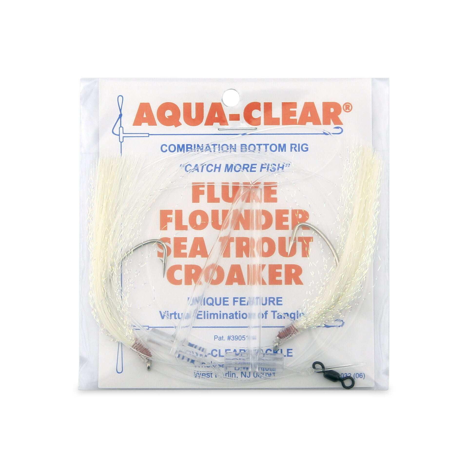 Aqua-Clear, Hi-Lo Solid Color Hair Teaser Rig, Flounder/Fluke/SeaTrout/Weakfish/Croaker, 3/0 Nickel Octopus Hook, AFW Swivel, 40 lb / 18.1 kg GS Mono, T-Standoff, White HairAvailability: In stock