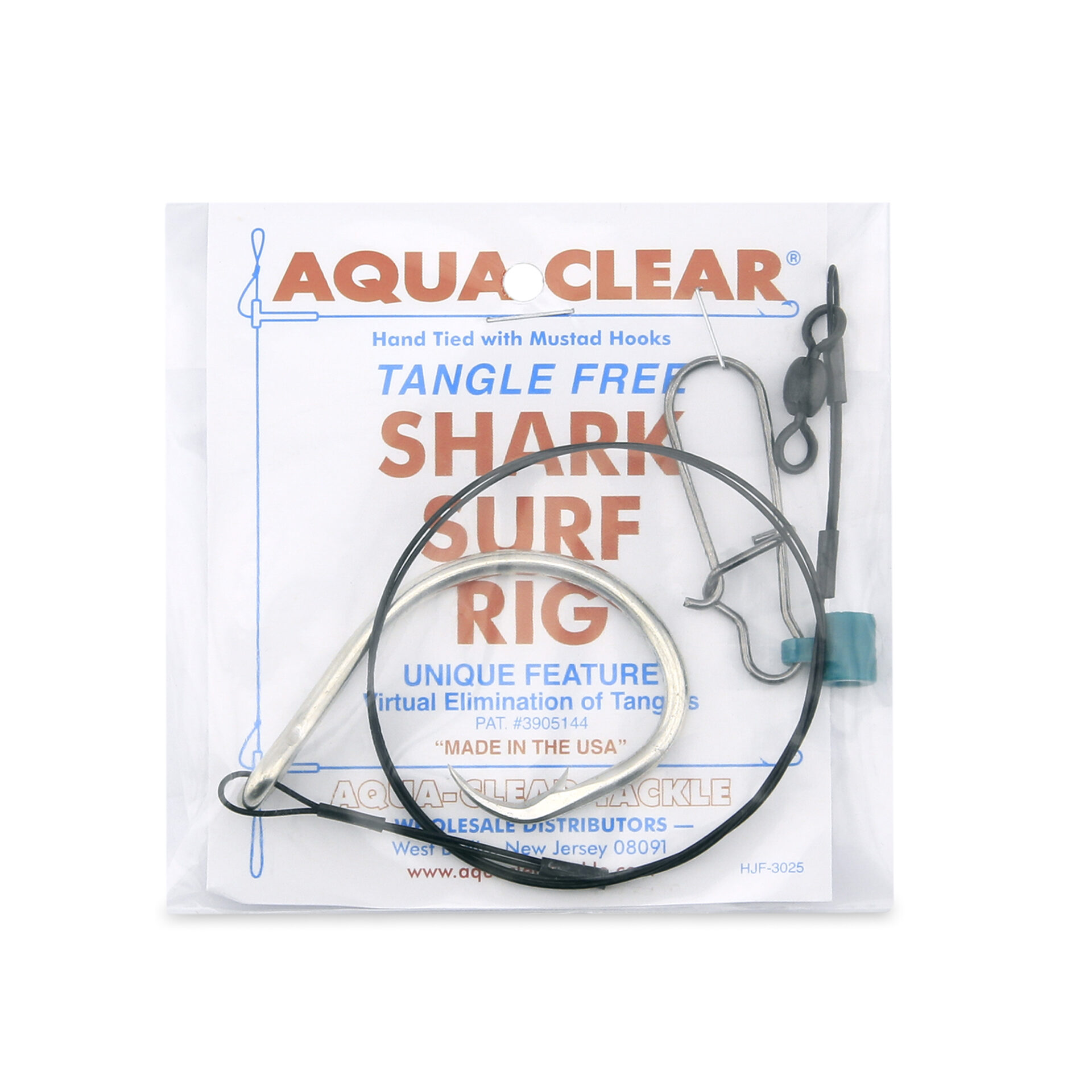 Aqua-Clear, Shark Surf Rig, 15/0 Extra Strong Circle Hook, AFW Swivel, 90 lb / 40.1 kg Surflon Black Wire 28 in / 71.1 cm Double-Crimped, Braid Resistant Fish Finder