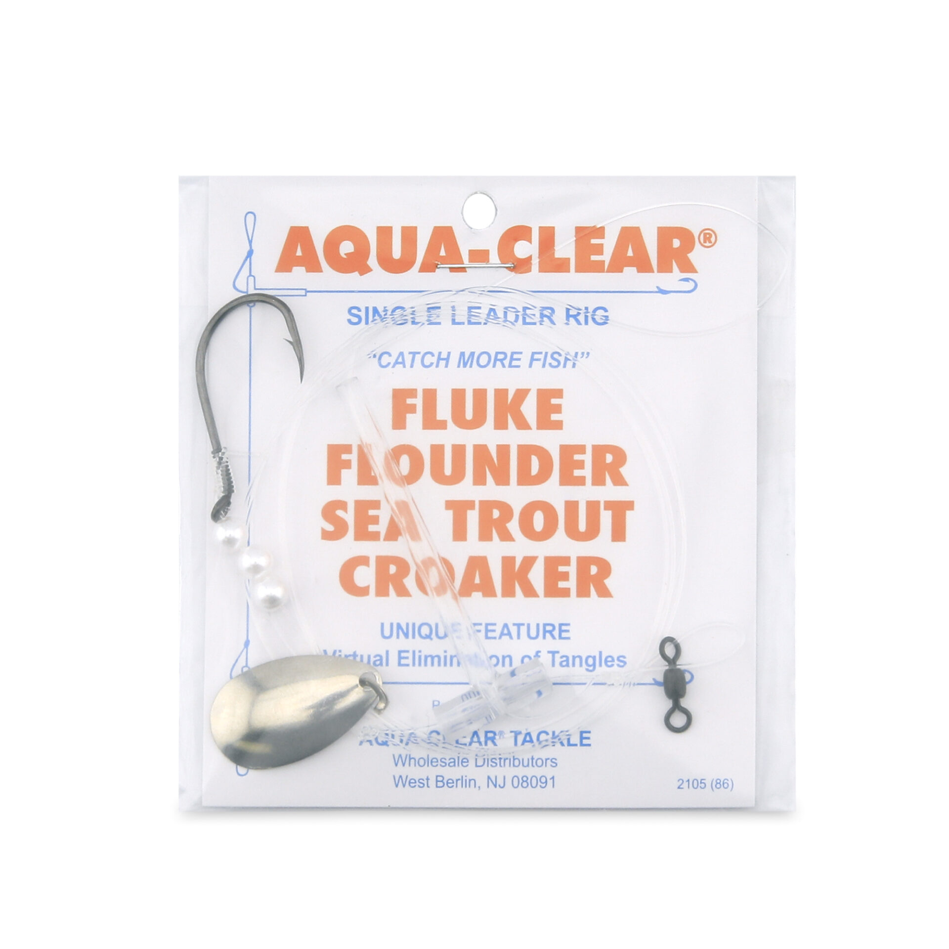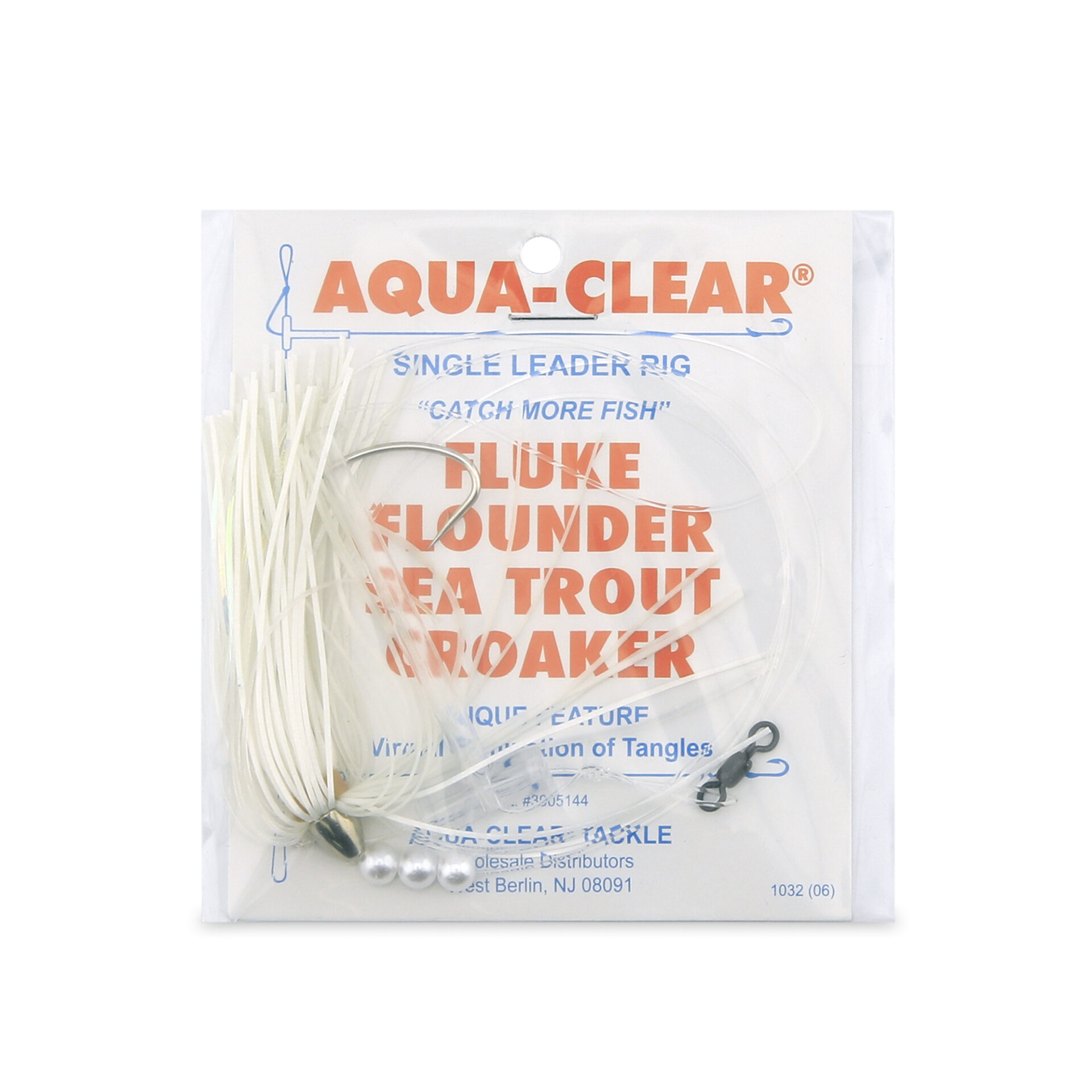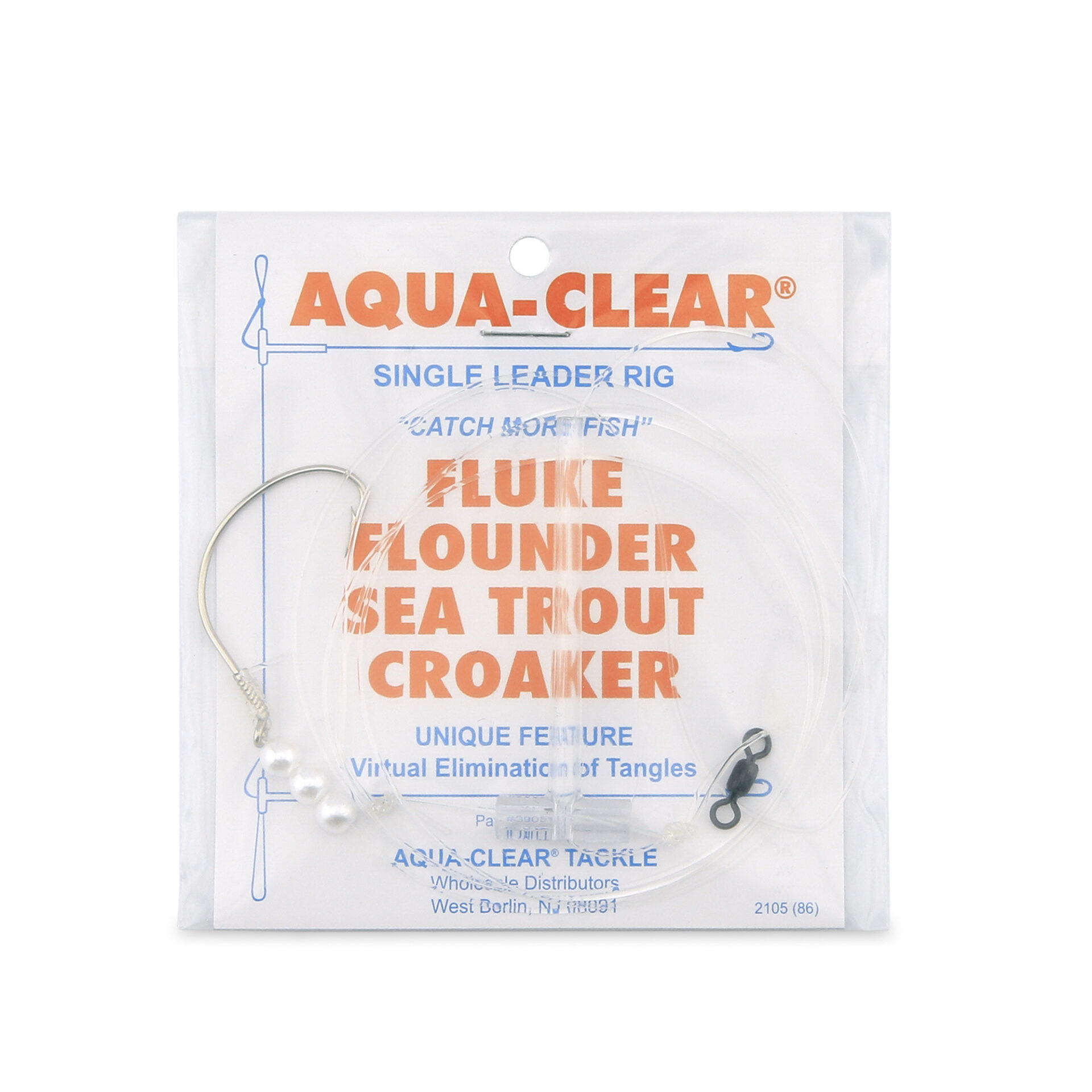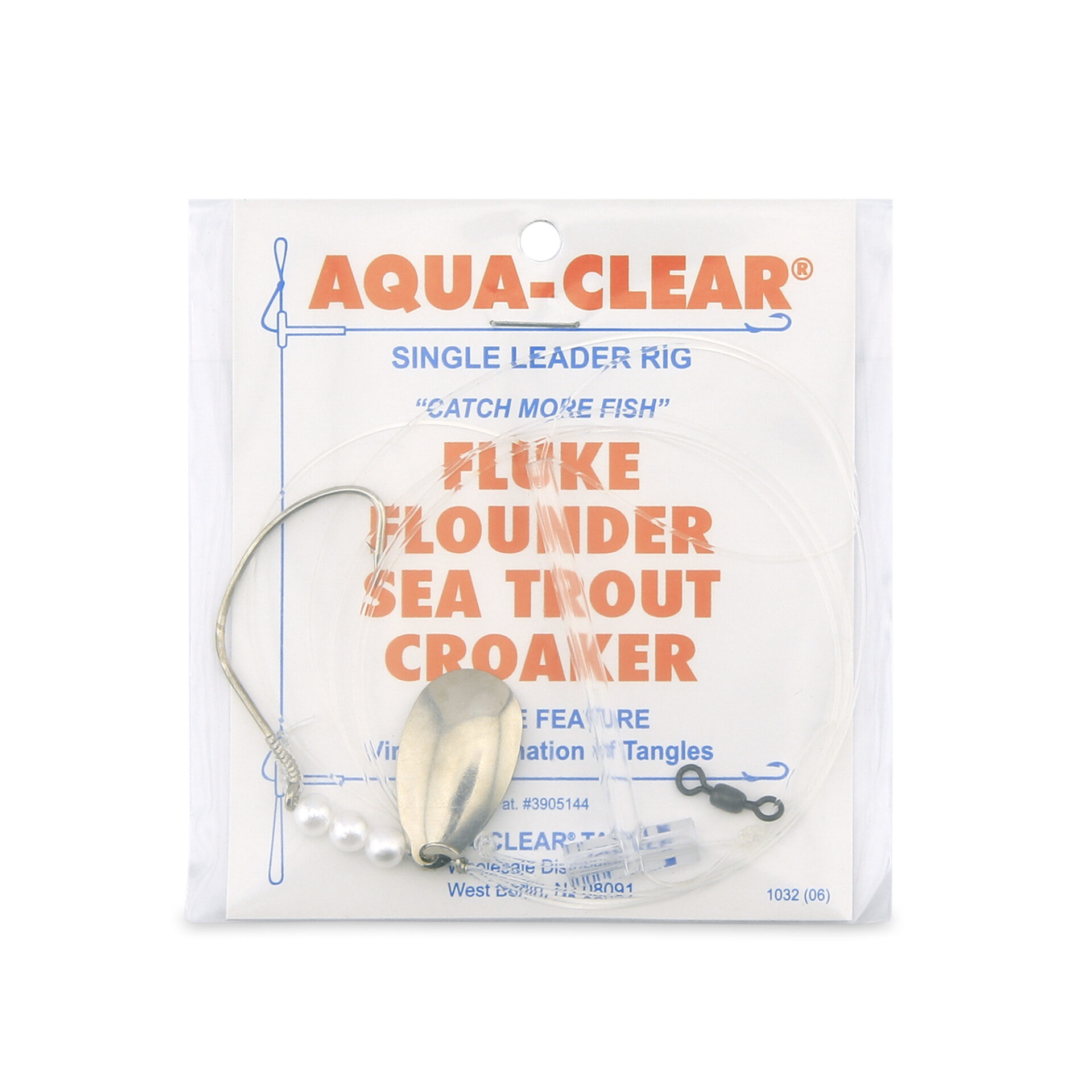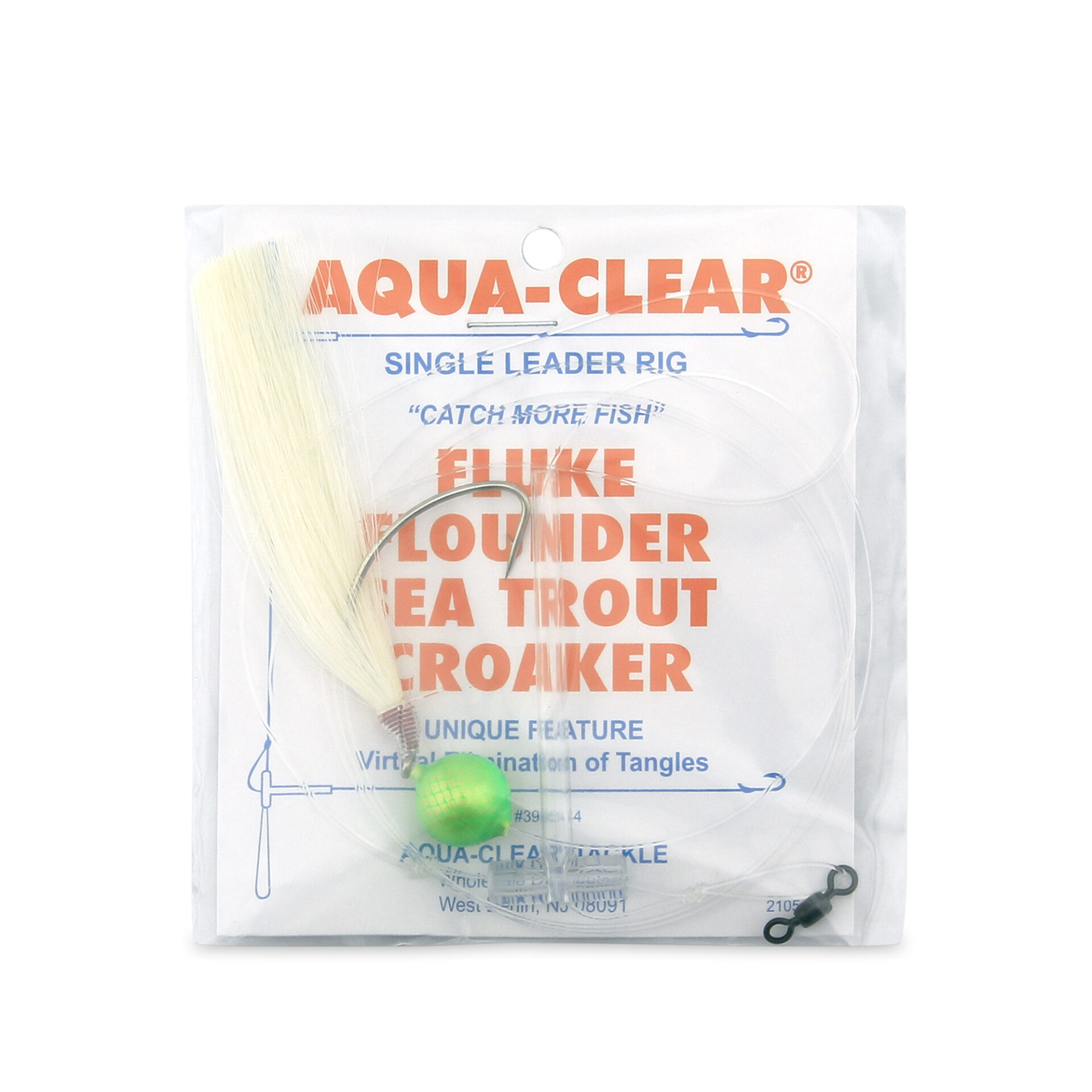 Aqua-Clear, Single Rig, Fluke/Flounder/SeaTrout/Weakfish/Croaker, 3/0 XL Hook, AFW Swivel, 40 lb / 18.1 kg Grand Slam Mono, T-Standoff