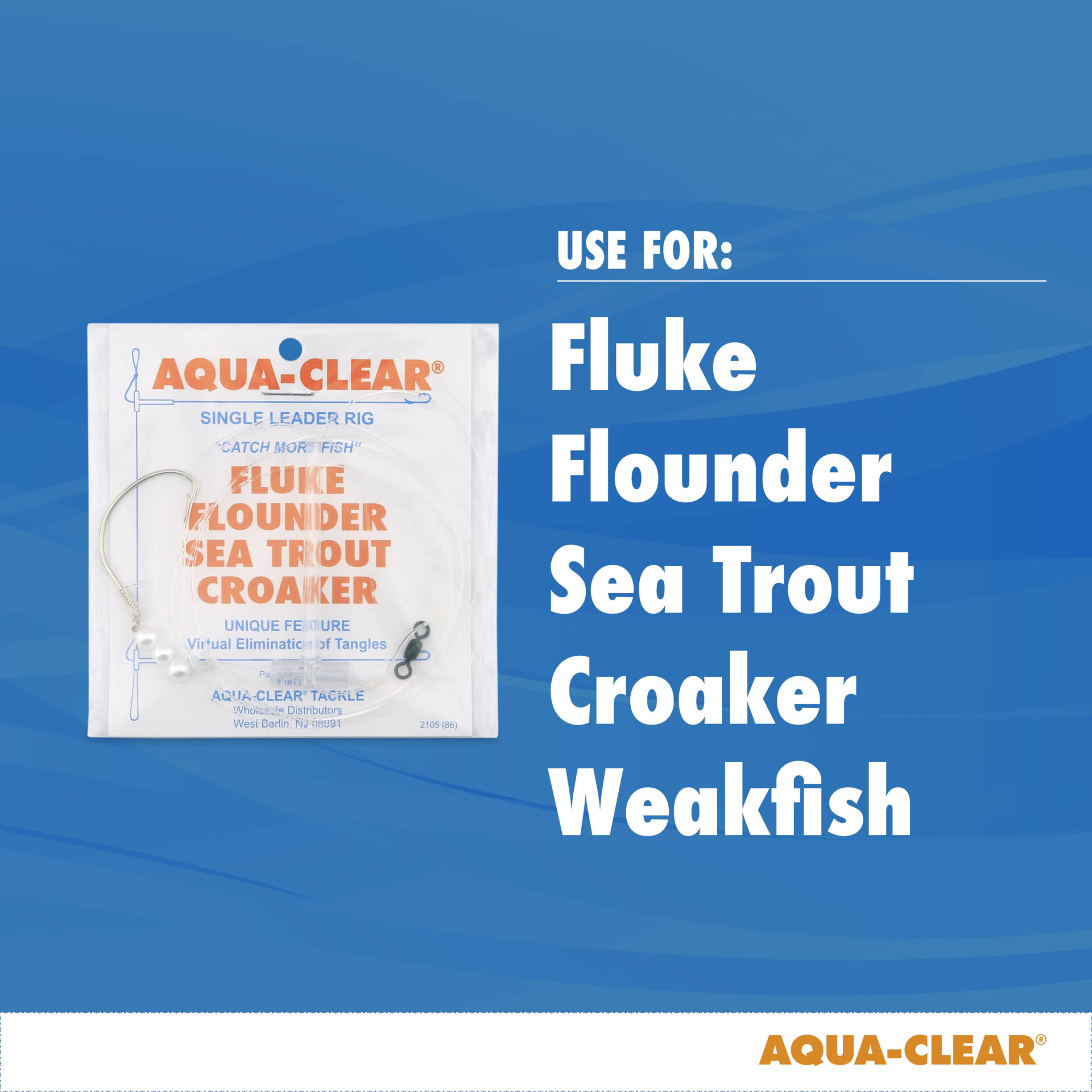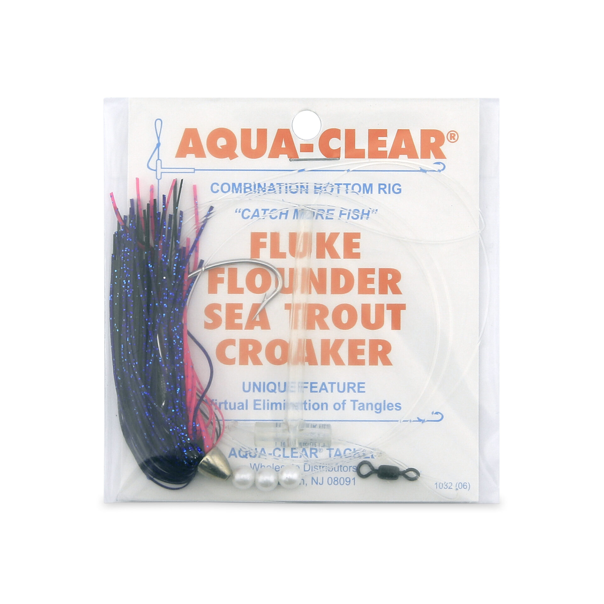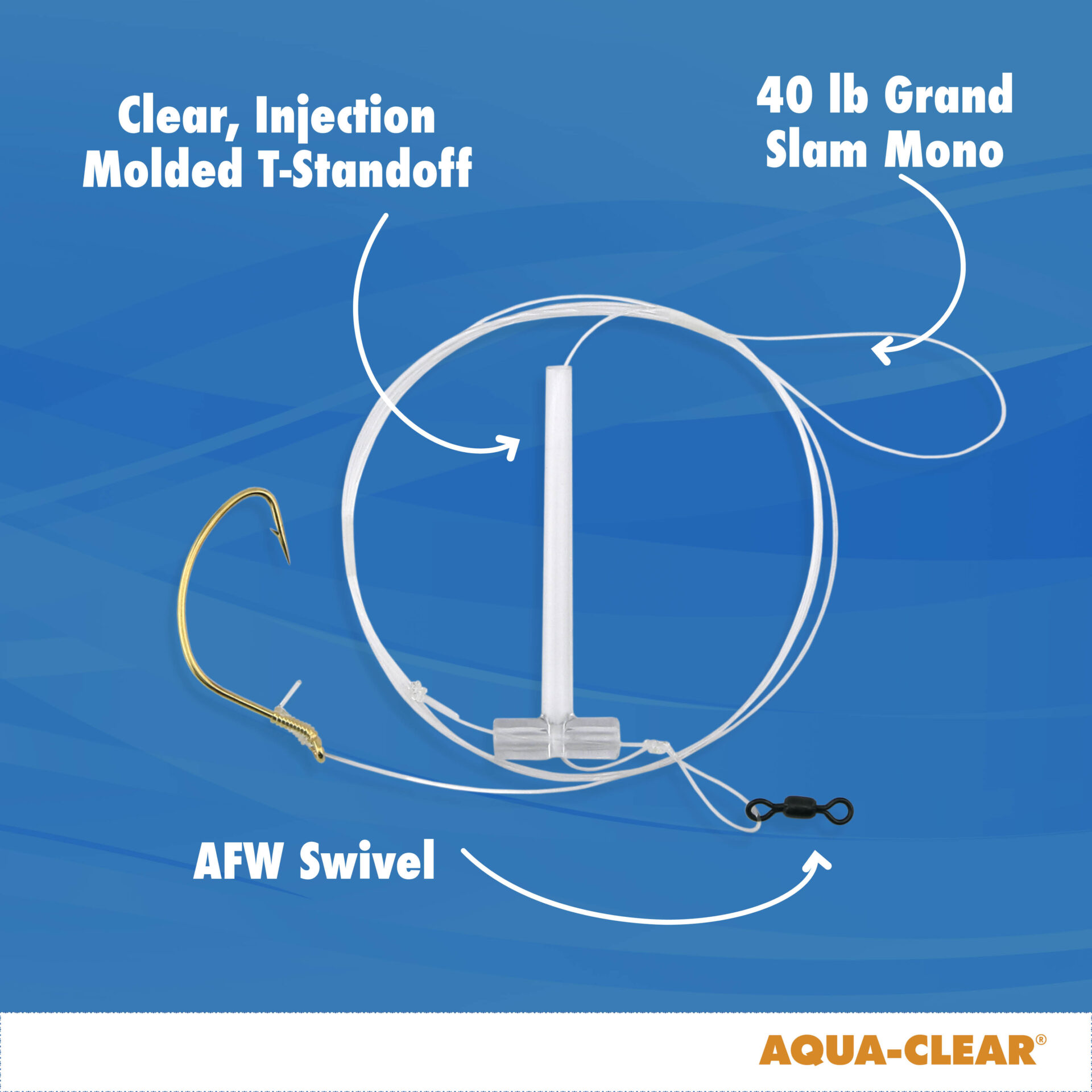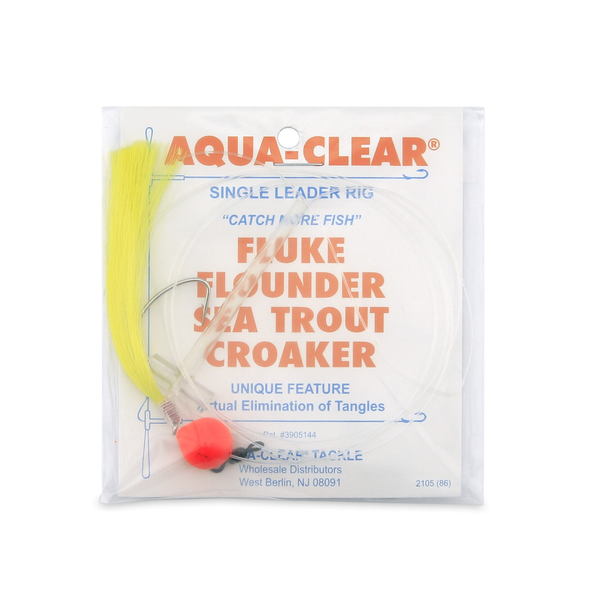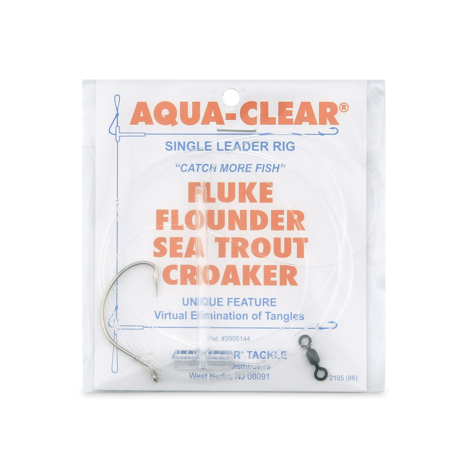 Aqua-Clear, Single Rig, Fluke/Flounder/SeaTrout/Weakfish/Croaker, 3/0 XL Hook, AFW Swivel, 40 lb / 18.1 kg Grand Slam Mono, T-Standoff