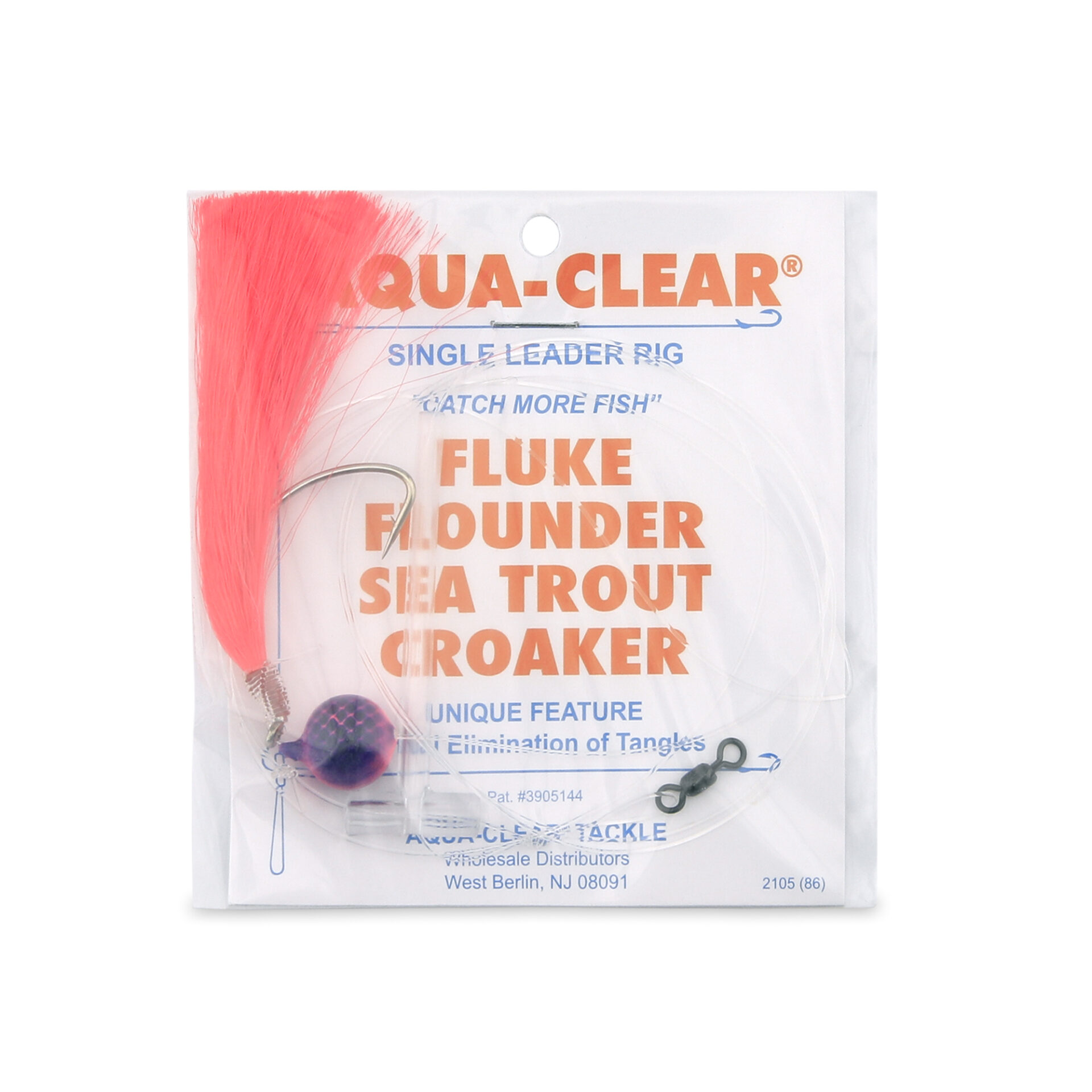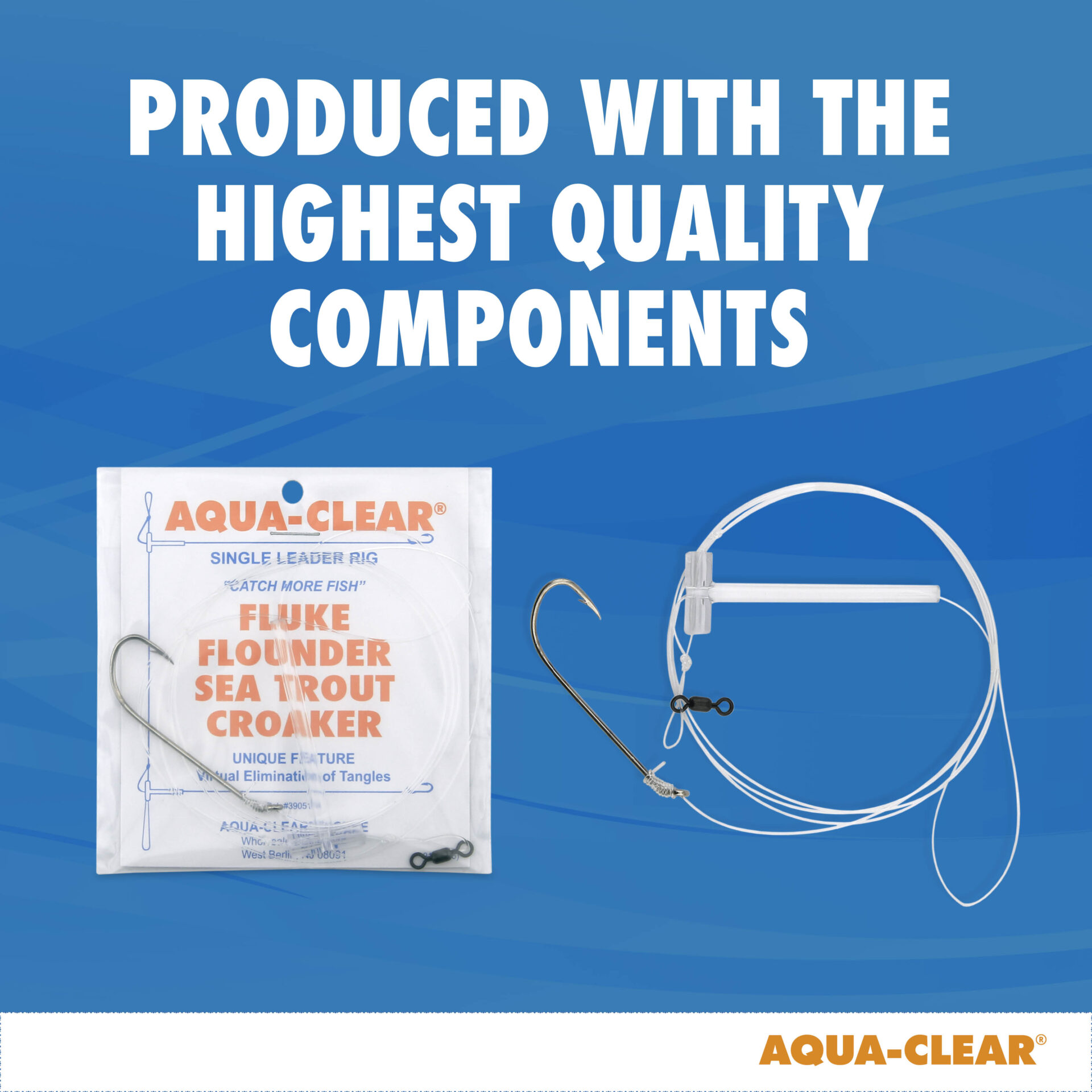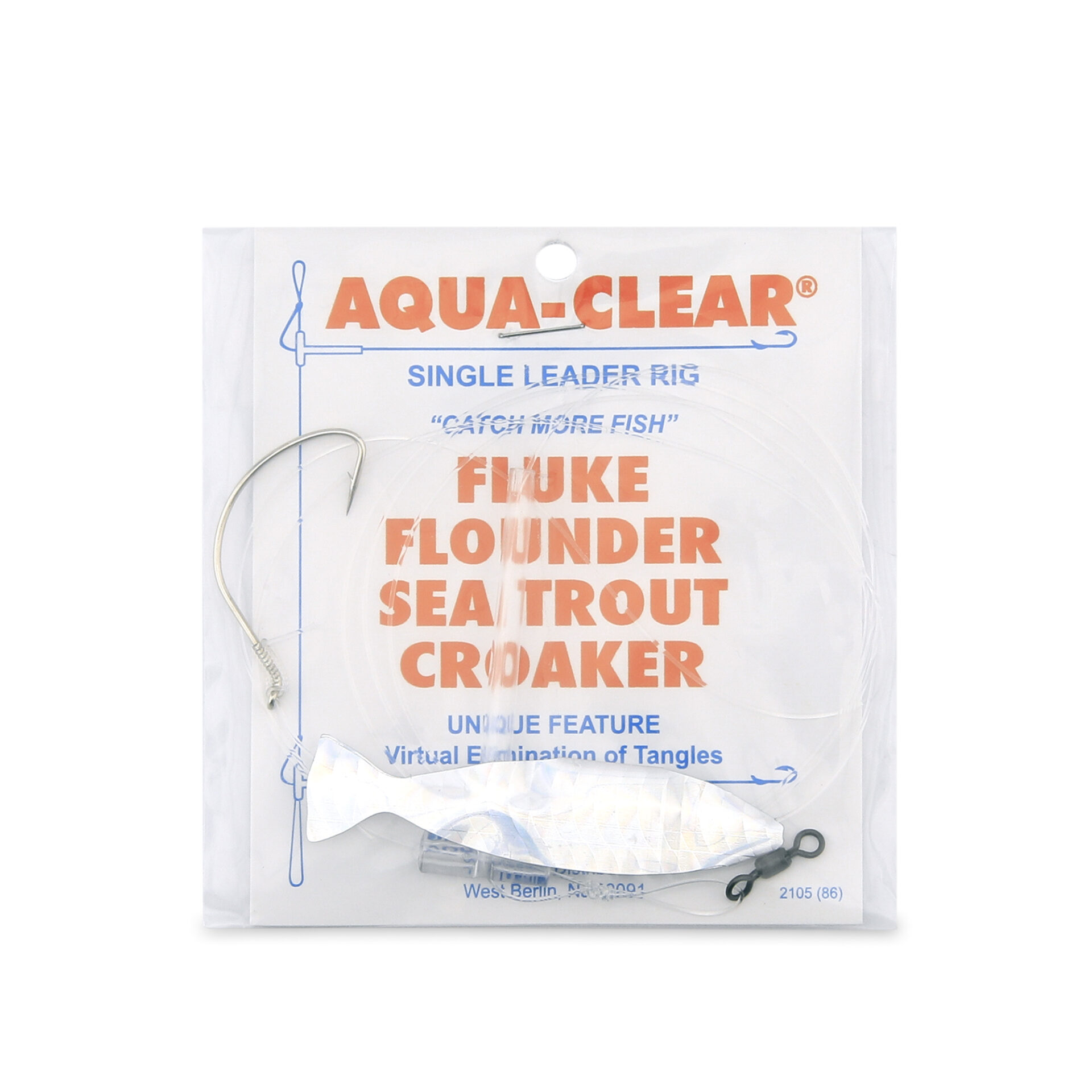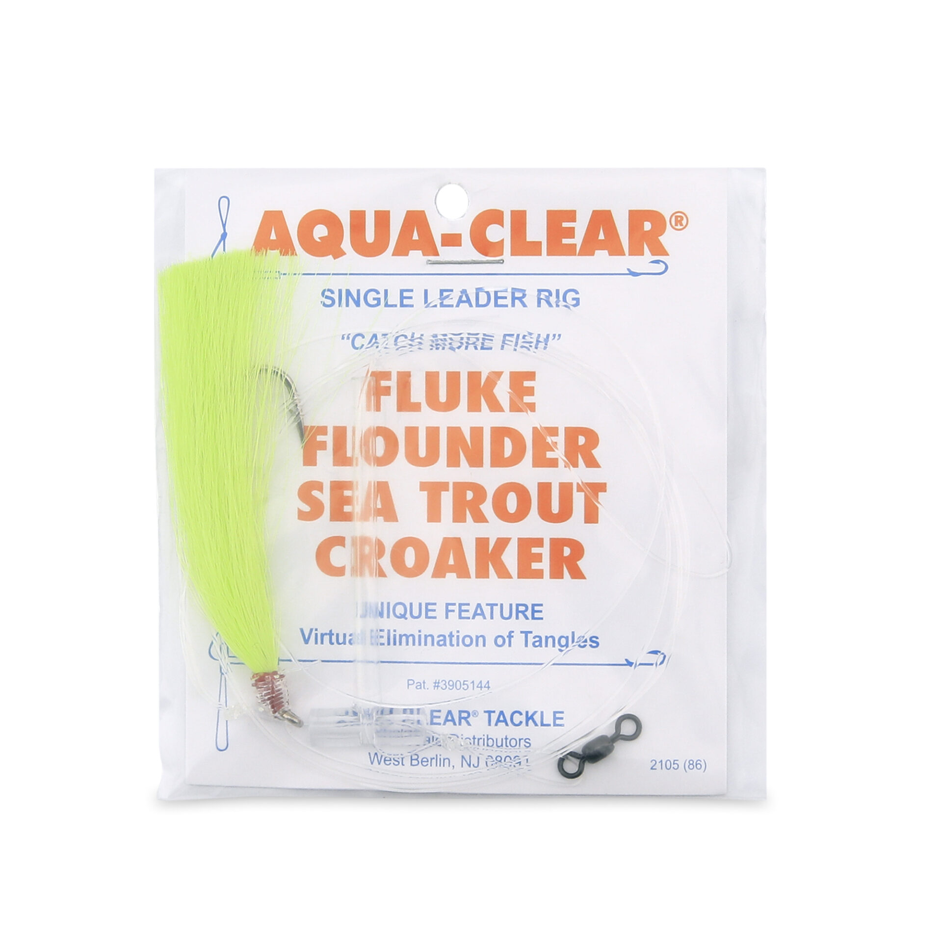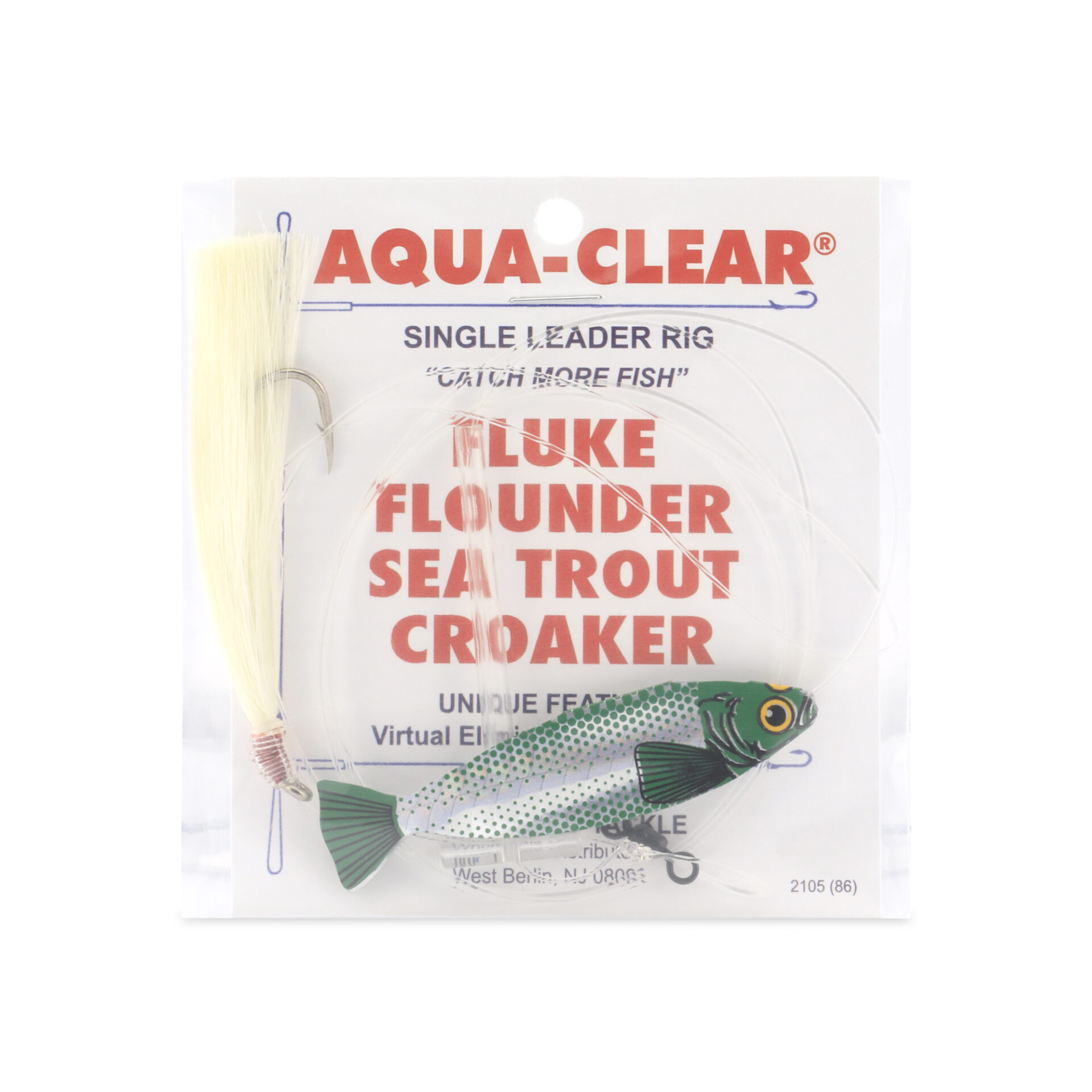 Aqua-Clear, Single Rig, Fluke/Flounder/SeaTrout/Weakfish/Croaker, 3/0 XL Hook, AFW Swivel, 40 lb / 18.1 kg Grand Slam Mono, T-Standoff