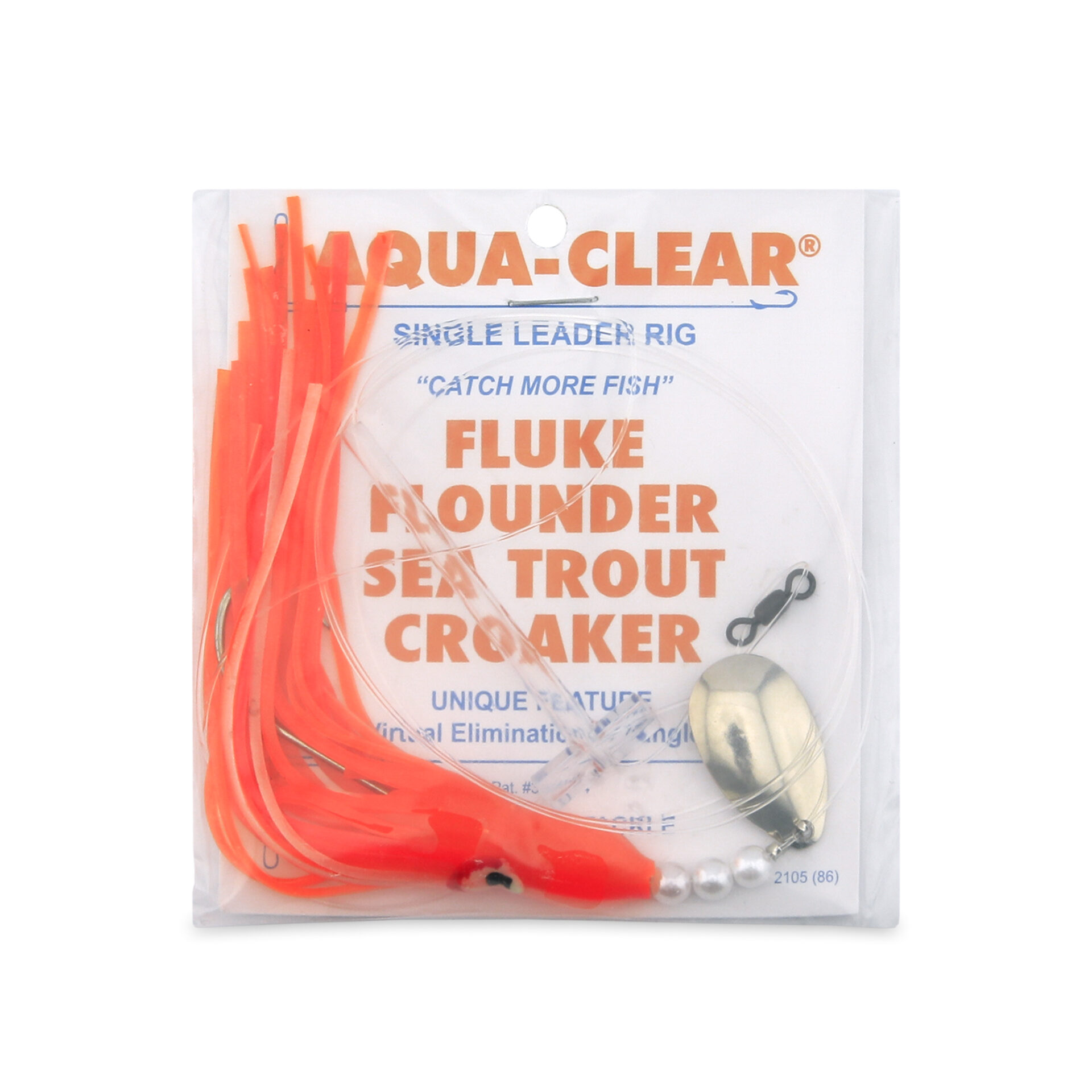Aqua-Clear, Single Squid Teaser Rig, Flndr/Fluke/SeaTrout/Croaker, 3/0 XL Hook, AFW Swvl, 40 lb/18.1 kg GS Mono, T-Stndff, Lg Spinr, Sun Kissed Orange/Pink SquidAvailability: In stock