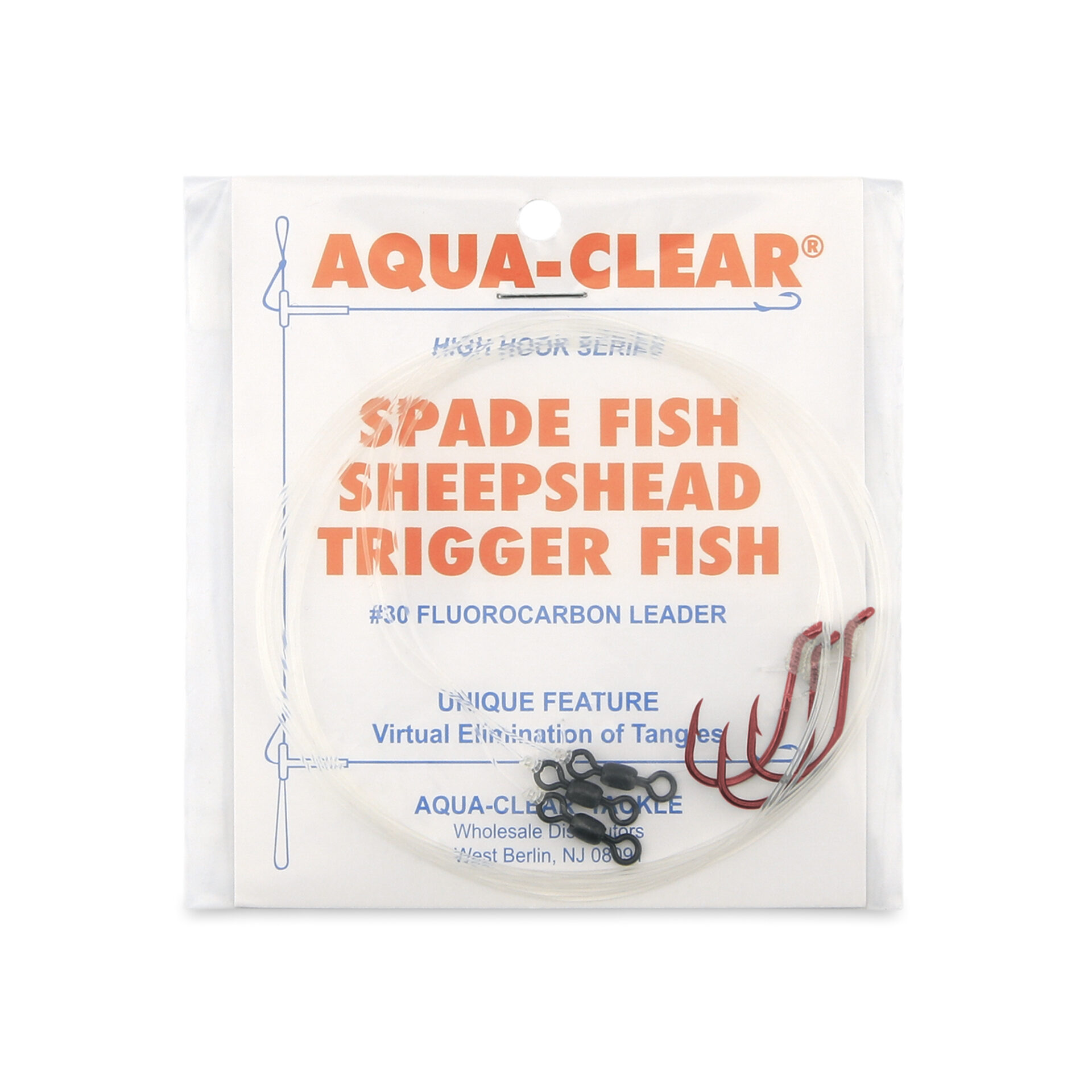 Aqua-Clear, Spade Fish Snelled Hooks, 1/0 Ultrapoint Red Hook, 30 lb / 13.6 kg Triple Fish Fluorocarbon 36 in / 91.4 cm, 3 pc