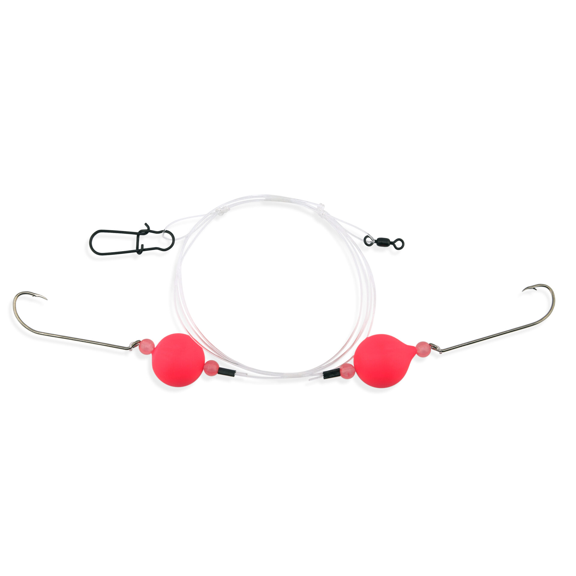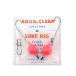 Aqua-Clear, Surf Ball Hi-Lo Rig, Flounder / Fluke / Striped Bass / Weakfish / Bluefish, Size 1 XL Hook, AFW Swivel, 60 lb / 27.2 kg Grand Slam Mono, Pink Float, Beads