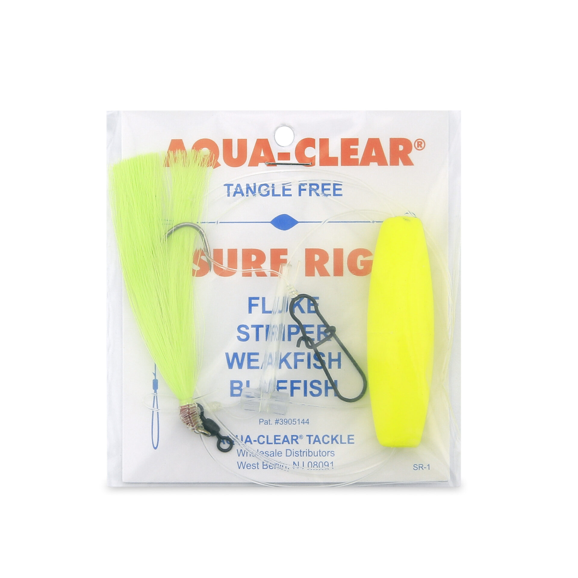 Aqua-Clear, Surf Rig, Floulder / Fluke / Striped Bass / Weakfish / Bluefish, T-Standoff, 3/0 Gold Color Octopus Hook, AFW Swivel, 60 lb / 27.2 kg Grand Slam MonoAqua-Clear, Surf Rig, Floulder / Fluke / Striped Bass / Weakfish / Bluefish, T-Standoff, 3/0 Gold Color Octopus Hook, AFW Swivel, 60 lb / 27.2 kg Grand Slam Mono
