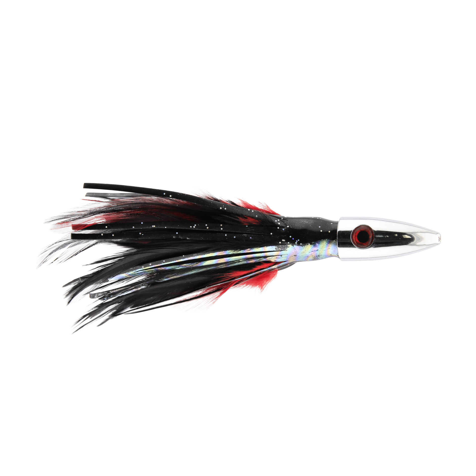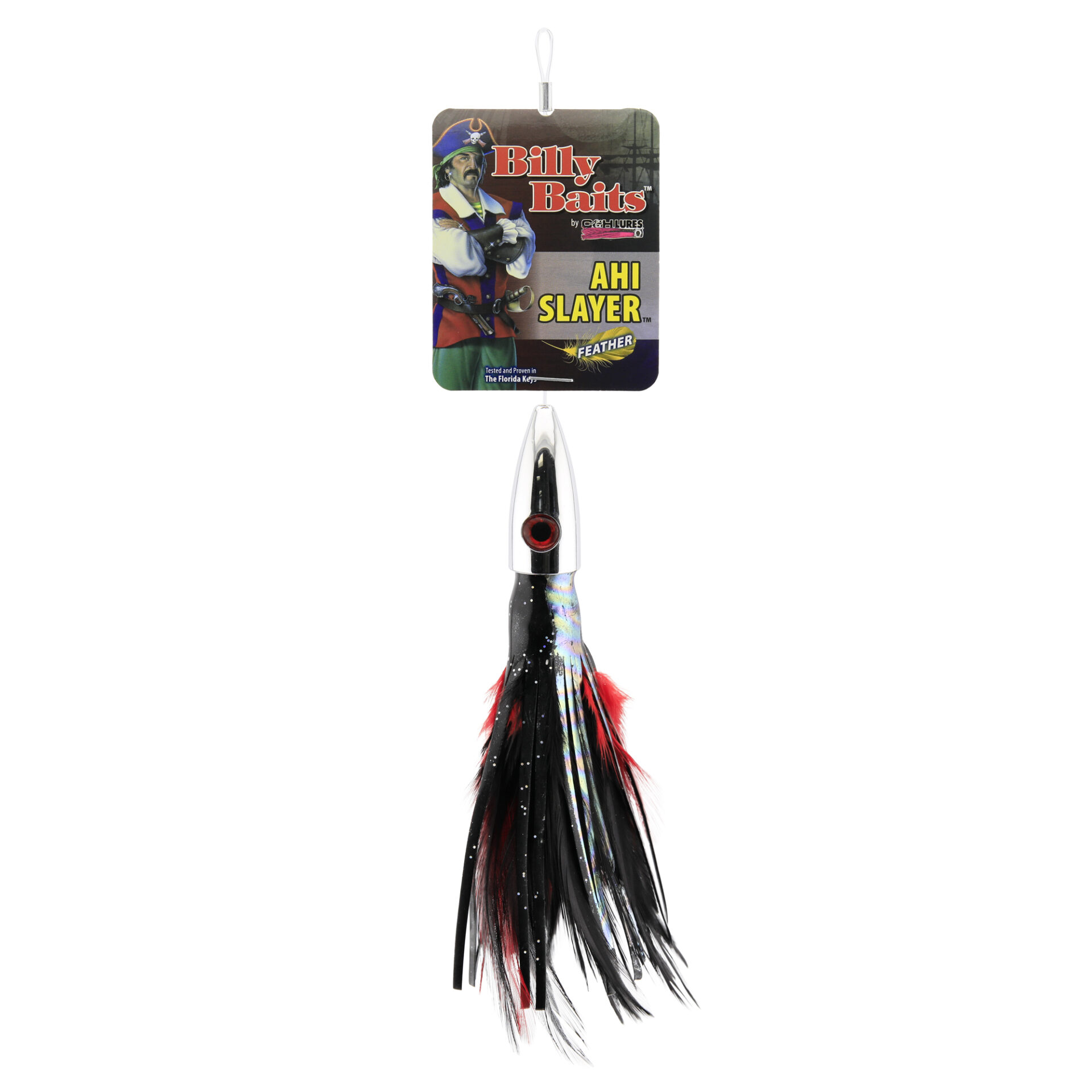 Billy Baits, Ahi Slayer Lure, Black/Red Feather/Vinyl Skirt, 5 in / 12.7 cm