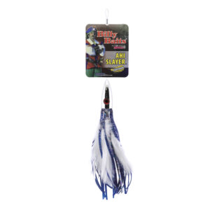 Billy Baits, Ahi Slayer Lure, Blue/White Feather/Vinyl Skirt, 5 in / 12.7 cm