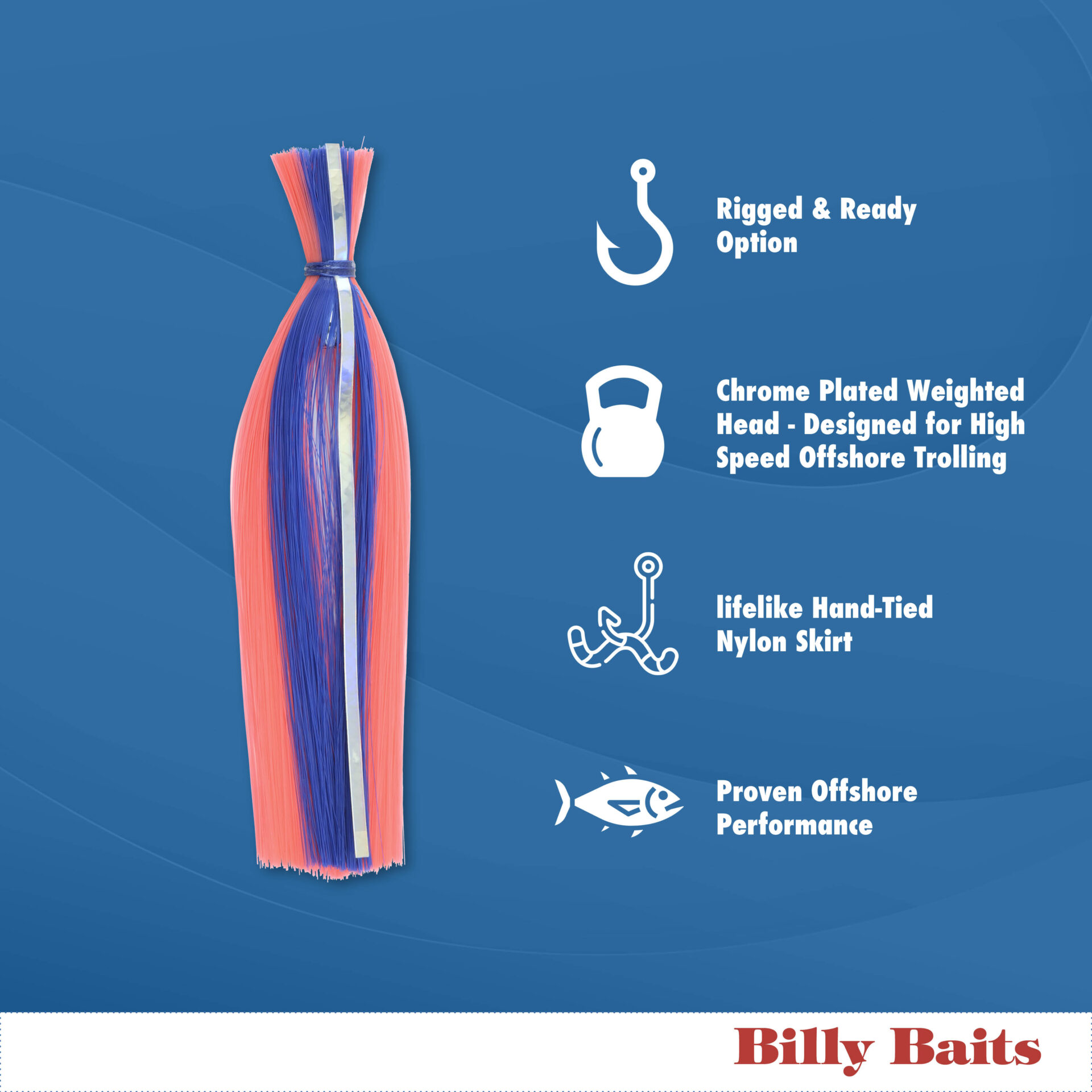 Billy Baits, Billy Witch Lure, Black/Red Stripe Skirt, Weighted Head, 6.5 in / 16.5 cm