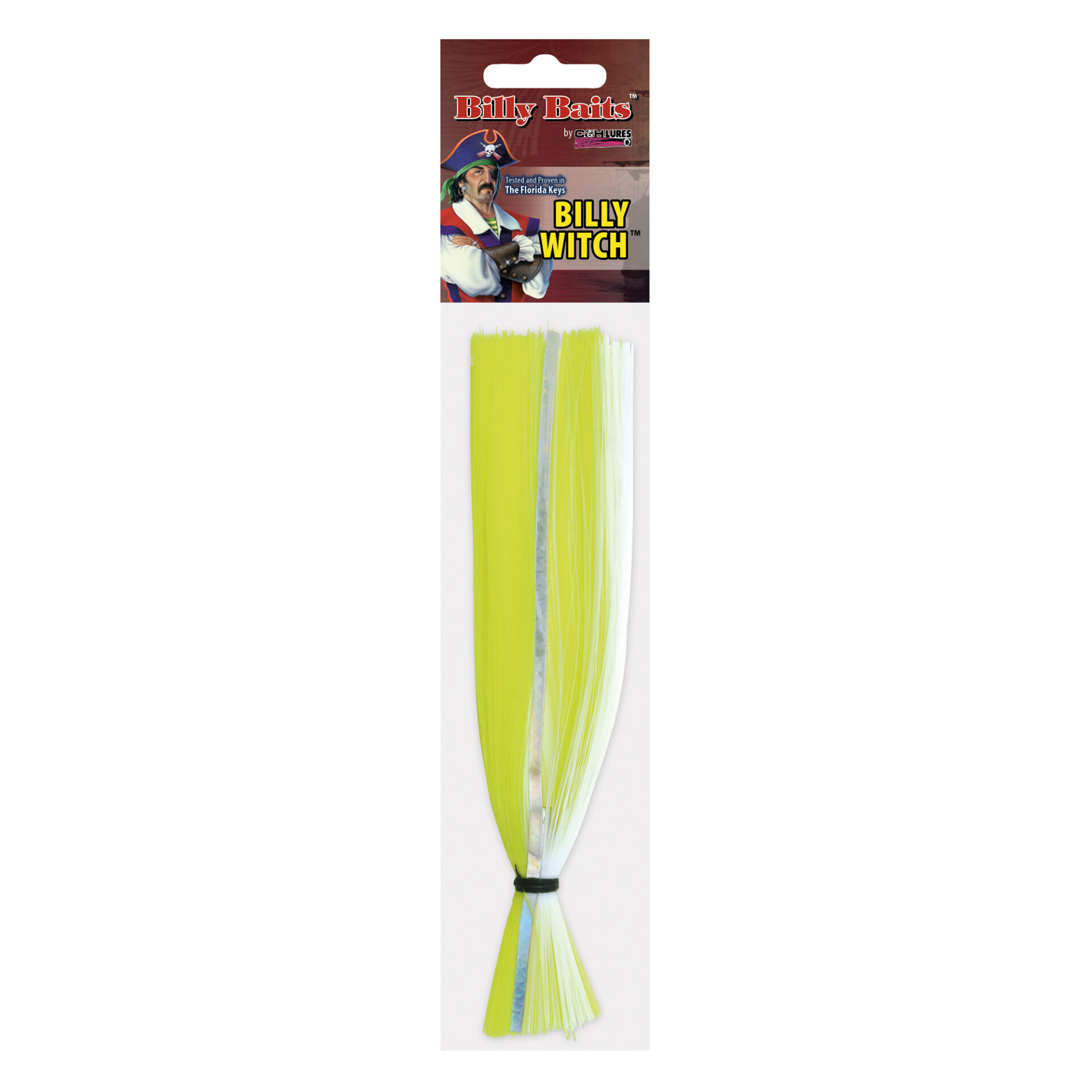 Billy Baits, Billy Witch Lure, Chrtrse/Wht Stripe Skirt, Weighted Head, 6.5 in / 16.5 cm