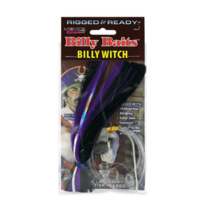 Billy Baits, Billy Witch Rigged & Ready, Black/Prple Stripe Skirt, 0.25 oz Head, 7/0 Hook, 0.50 oz Sinker, Bait Spring, Looped End, 130 lb / 58.9 kg GSMono Line, 6 ft / 1.8 m