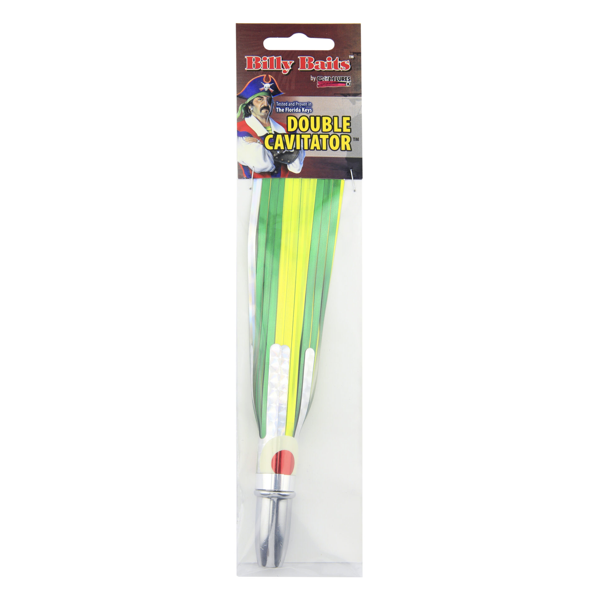 Billy Baits, Double Cavitator Lure, Chartreuse/Green Skirt, 2oz / 56g Head, 7 in / 17.7 cm