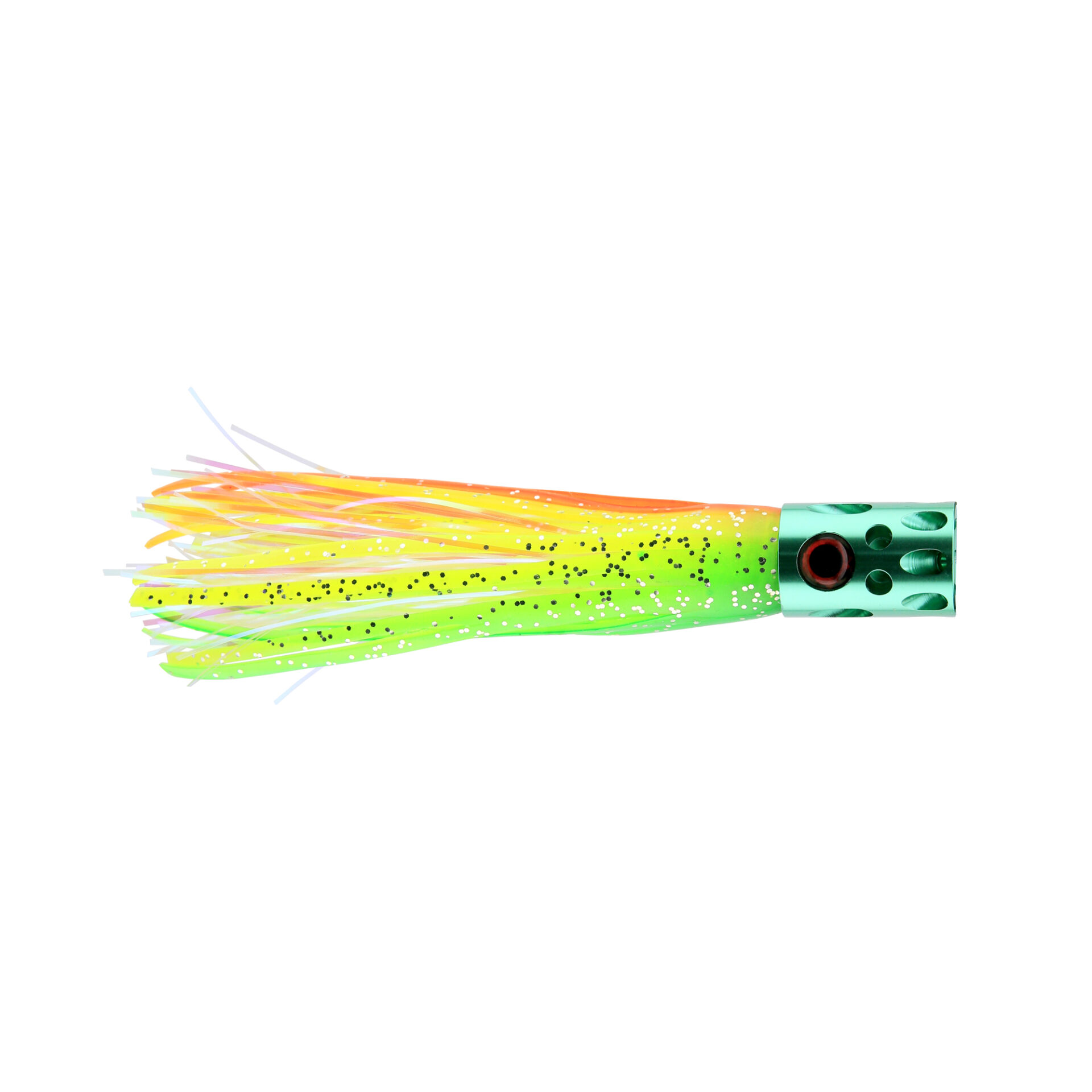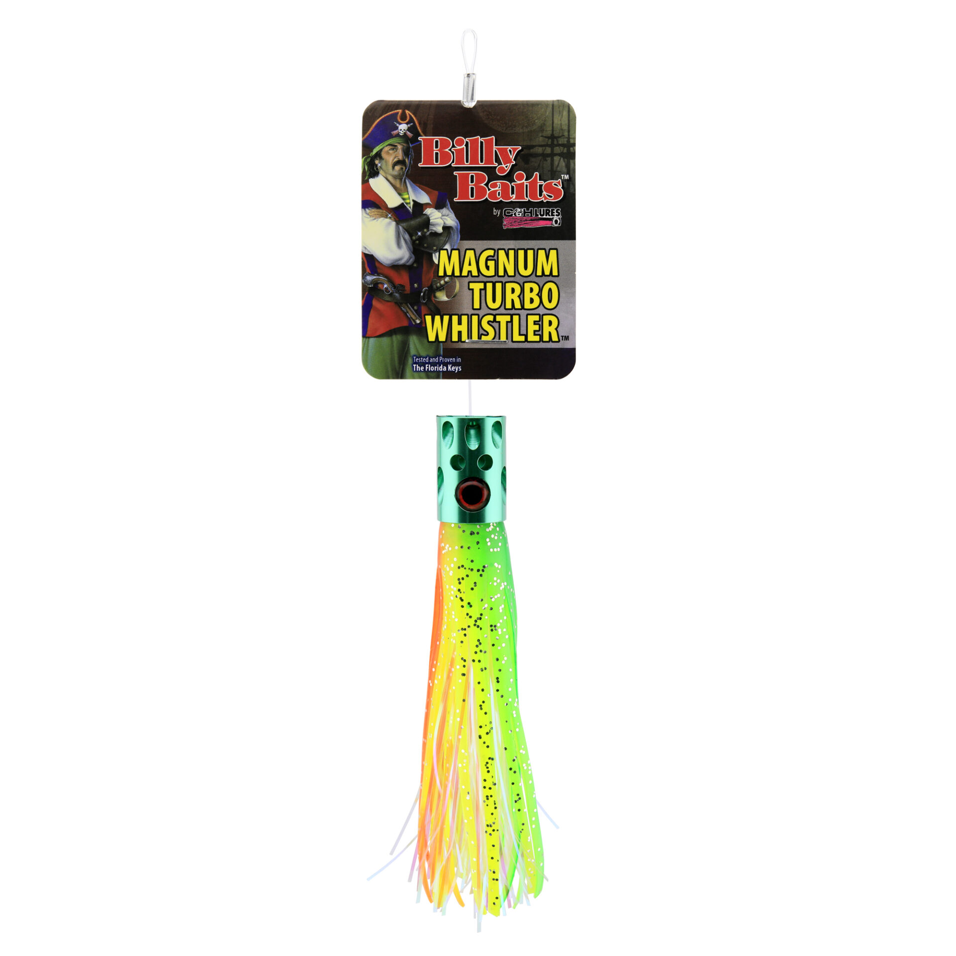 Billy Baits, Magnum Turbo Whistler Lure, Green/Chartreuse/Orange/Pearl Skirt, 2 oz / 56.6 g Head