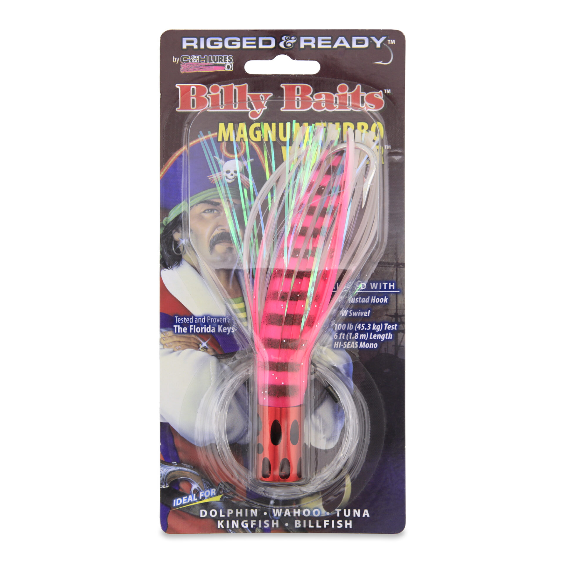 Billy Baits, Magnum Turbo Whistler Rigged & Ready, Pink/Pearl Skirt, 2 oz / 56.6 g Head, 7/0 Mustad Hook, AFW Swivel, 100 lb / 45.3 kg Grand Slam Mono Line, 6 ft / 1.8 m