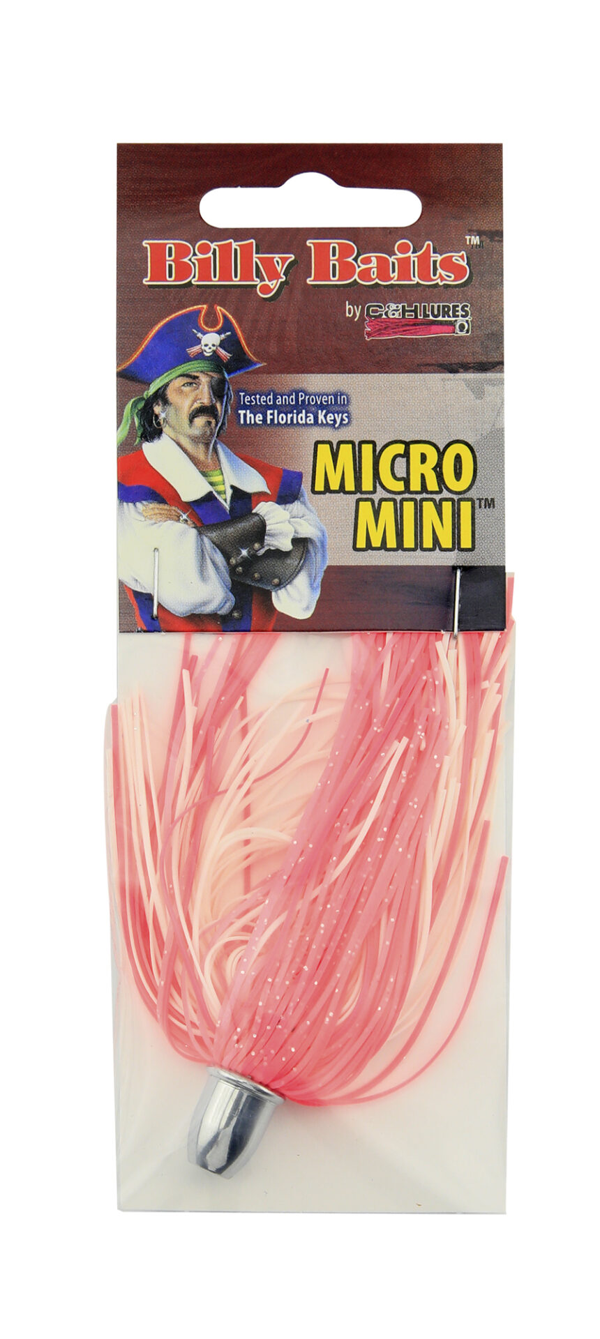Billy Baits, Micro Mini Lure, Pink/White Silicone Skirt, Weighted Head, 2.5 in / 6.4 cm