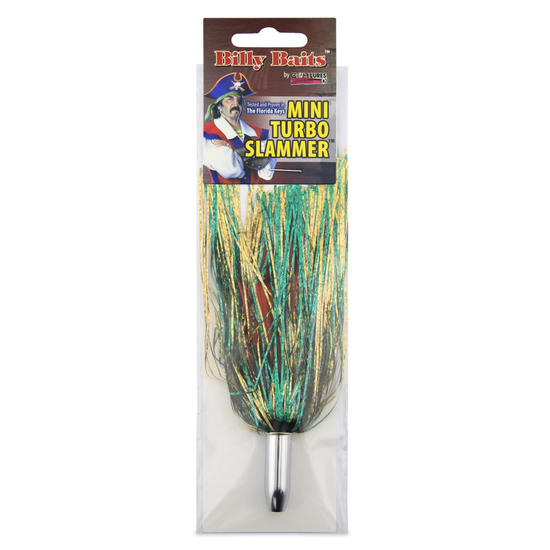 Billy Baits, Mini Turbo Slammer Lure, Green/Gold/Red/Red, Concave Head, 5.5 in / 14 cm