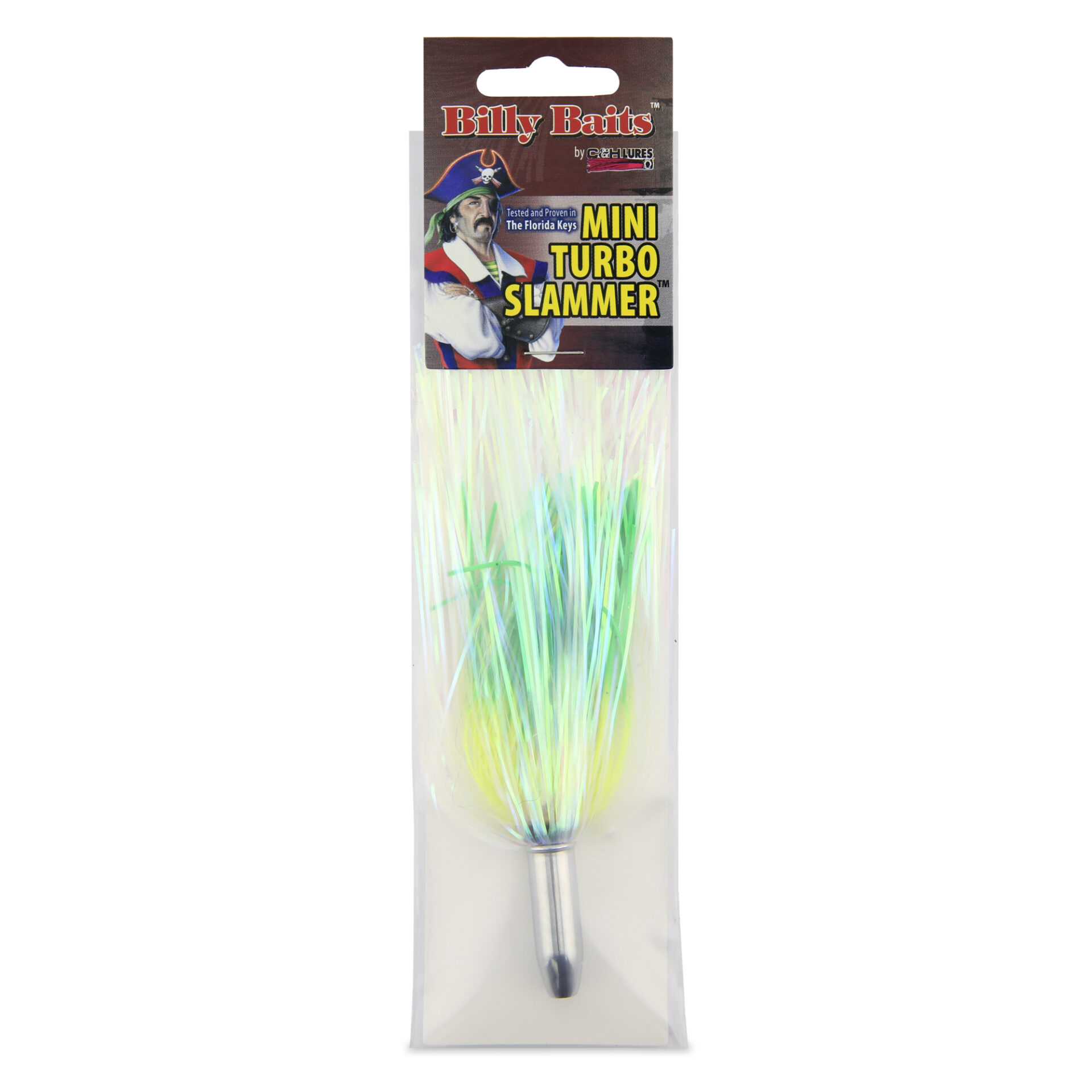 Billy Baits, Mini Turbo Slammer Lure, Pearl/Chartreuse/Green Firetip, Concave Head, 5.5 in / 14 cm