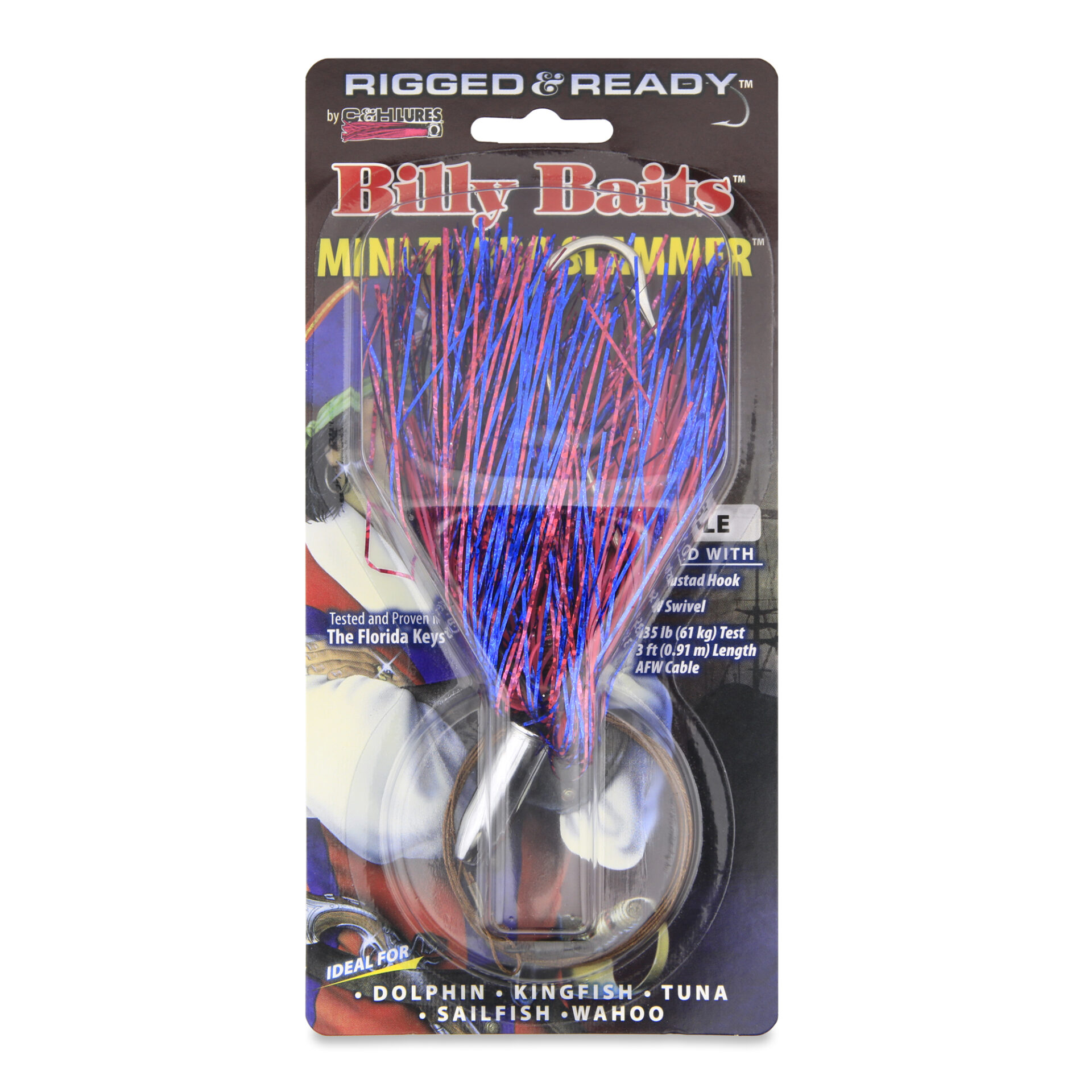 Billy Baits, Mini Turbo Slammer Rigged & Ready, Blue Fuchsia/Pink, 7/0 Mustad Hook, AFW Swivel, 135 lb / 61 kg AFW Cable, 3 ft / 0.9 m