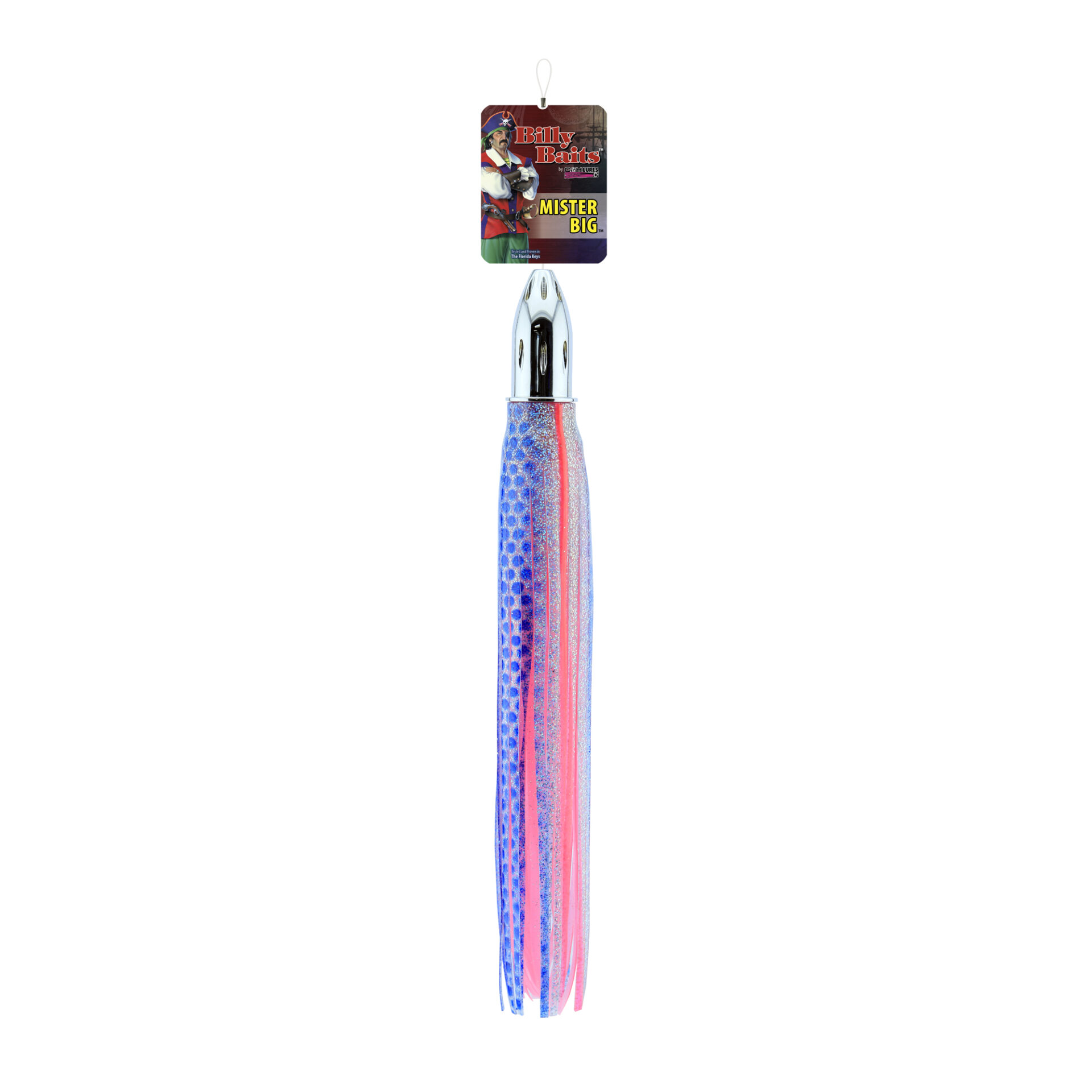 Billy Baits, Mister Big Lure, Blue/Pink/White PVC Skirt, 16 oz / 453 g Head, 16 in / 40.6 cm