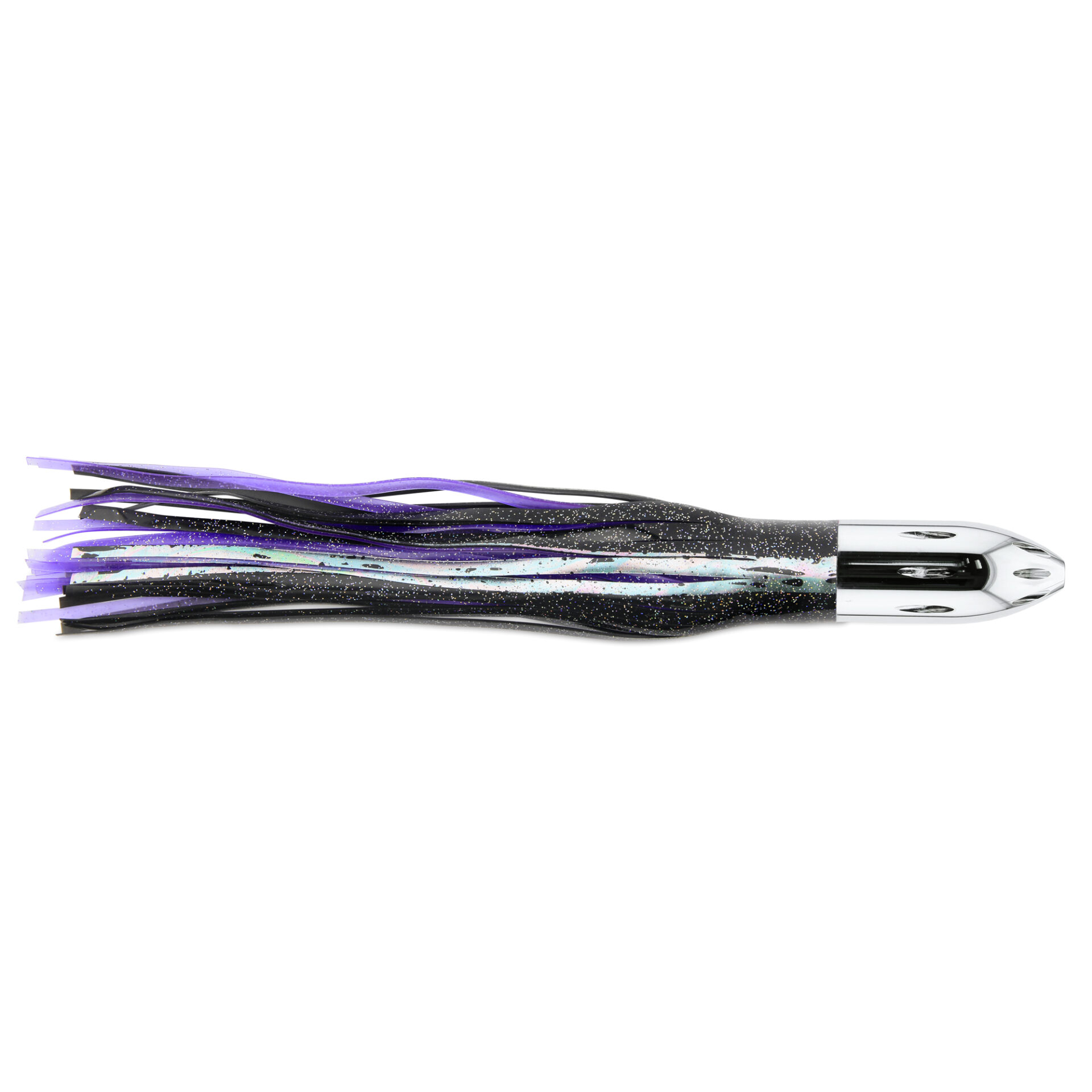 Billy Baits, Mister Big Lure, Ultimate Series, Tie on Skirt Version, Black/Purple PVC Skirt, XL, 16 oz / 454 g Head, 16 in / 40.6 cm
