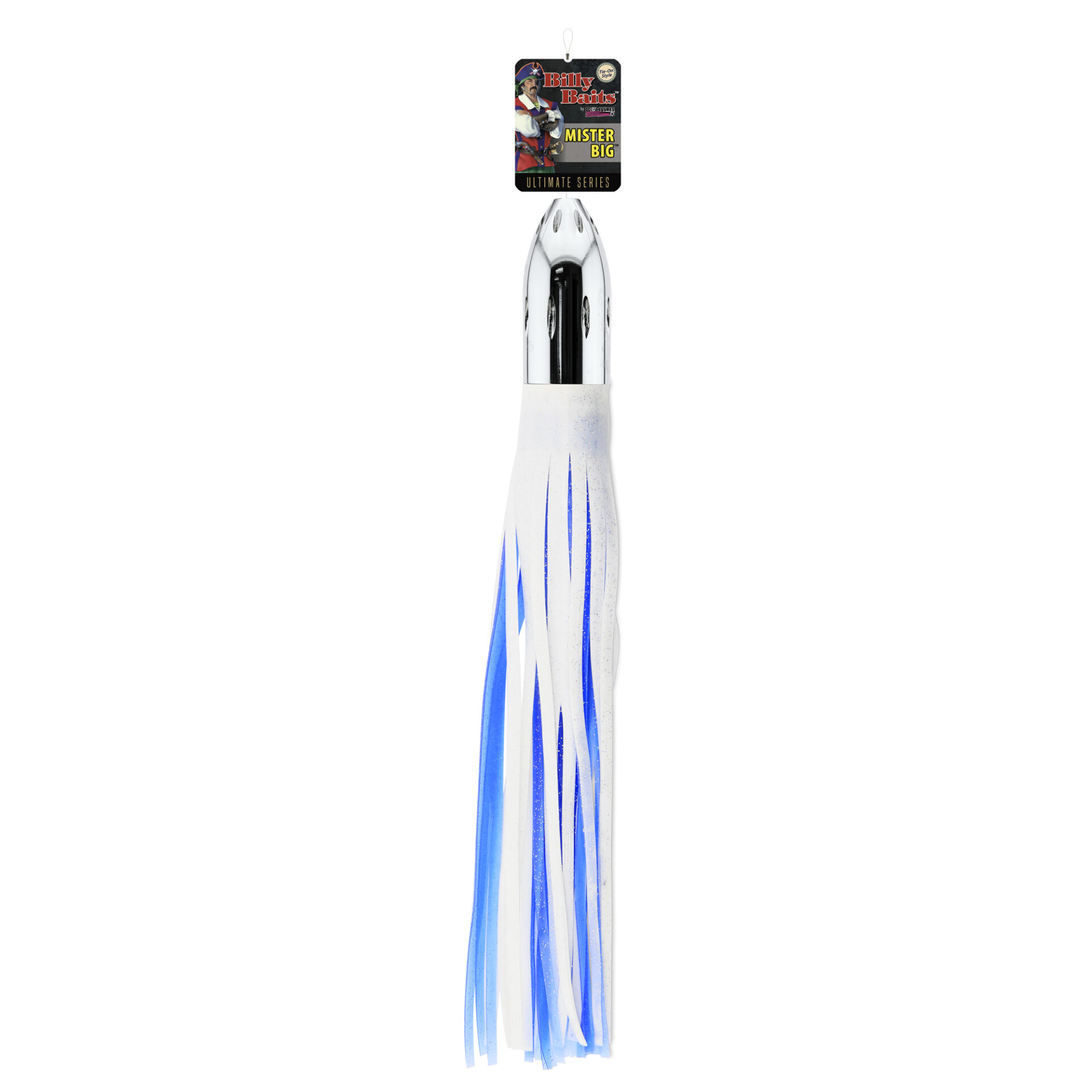 Billy Baits, Mister Big Lure, Ultimate Series, Tie on Skirt Version, White/Blue PVC Skirt, XL, 16 oz / 454 g Head, 16 in / 40.6 cm