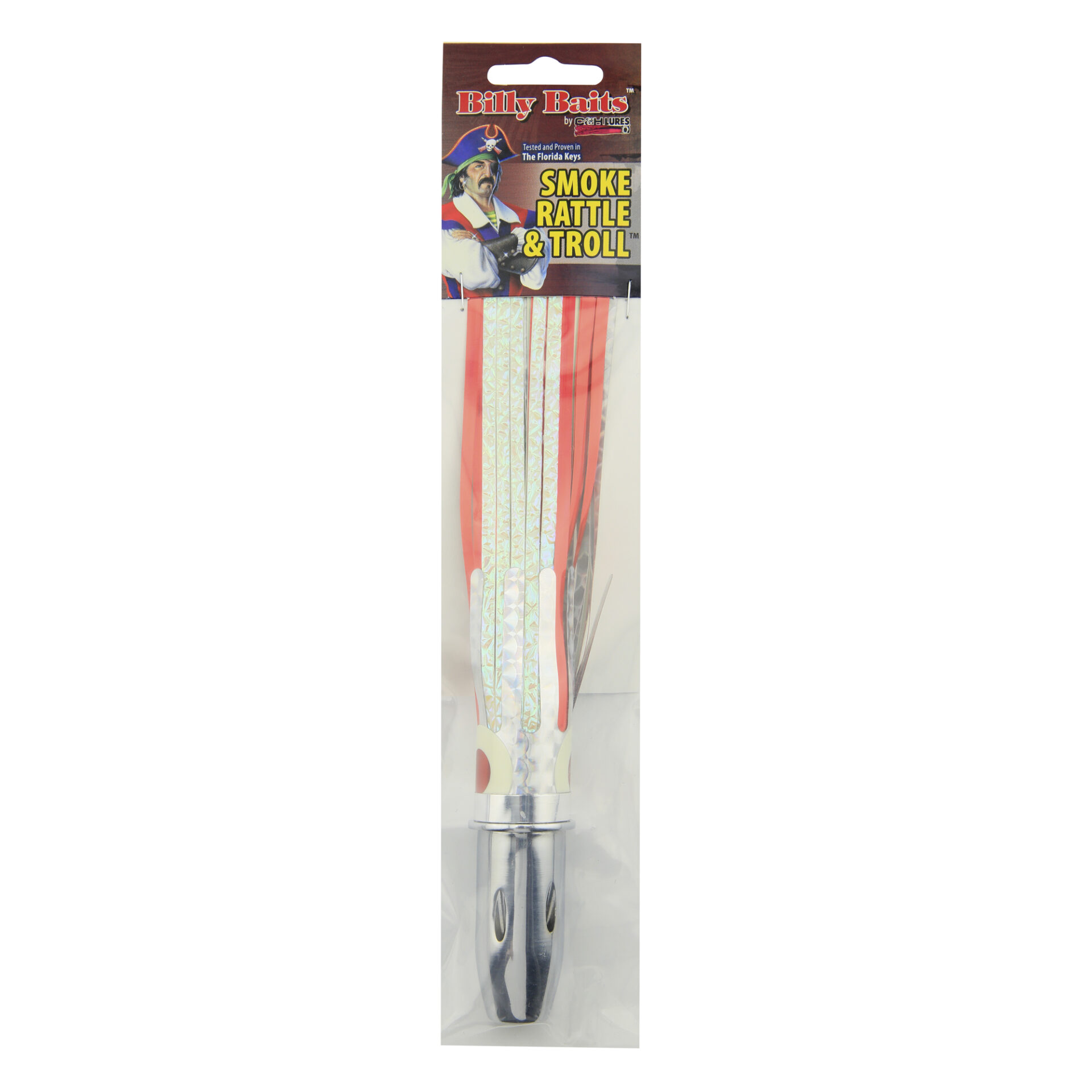 Billy Baits, Smoke Rattle & Troll Lure, Pink/White Eye-Skirt, 6 oz / 170 g Head, 8 in / 20.3 cm