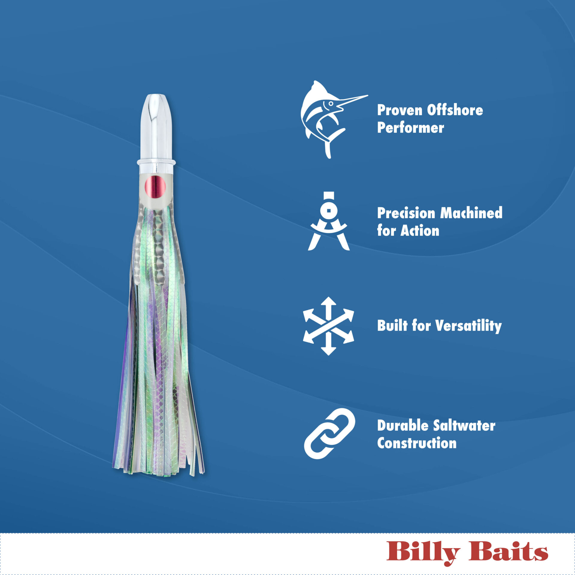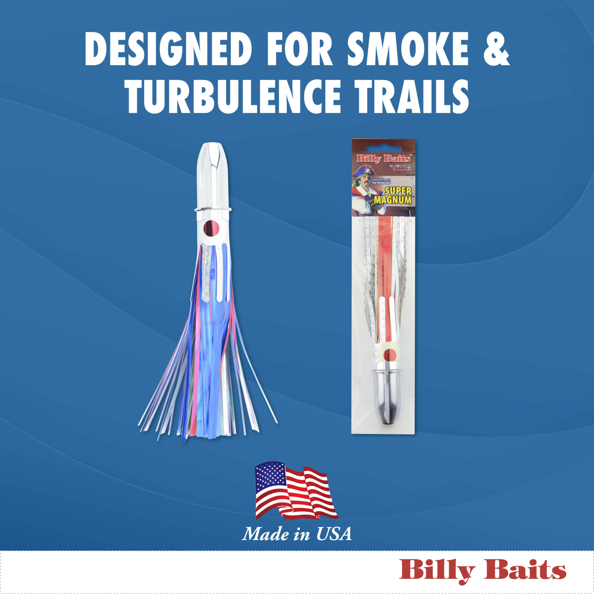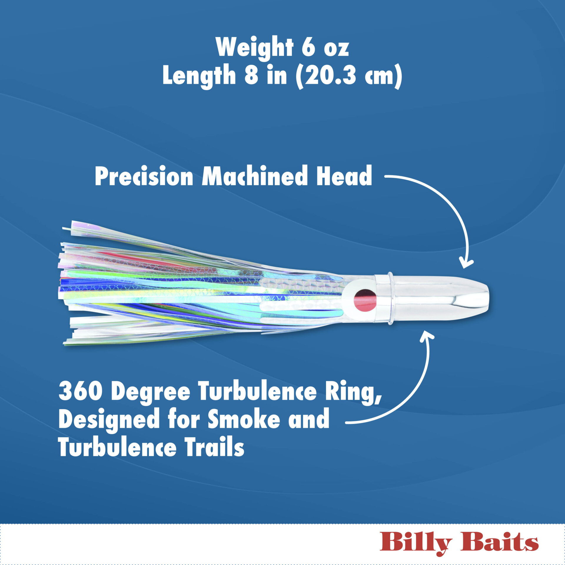 Billy Baits, Super Magnum Lure, Blue/White Eye-Skirt, 6 oz / 170 g Head, 8 in / 20.3 cm
