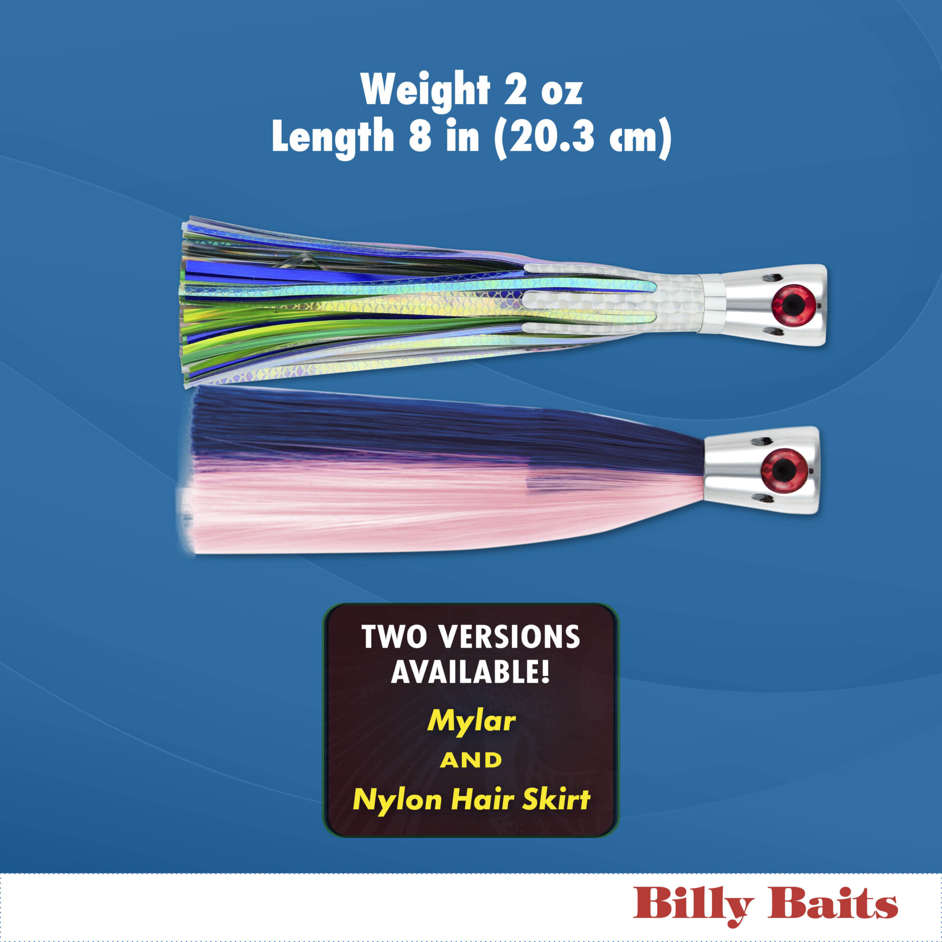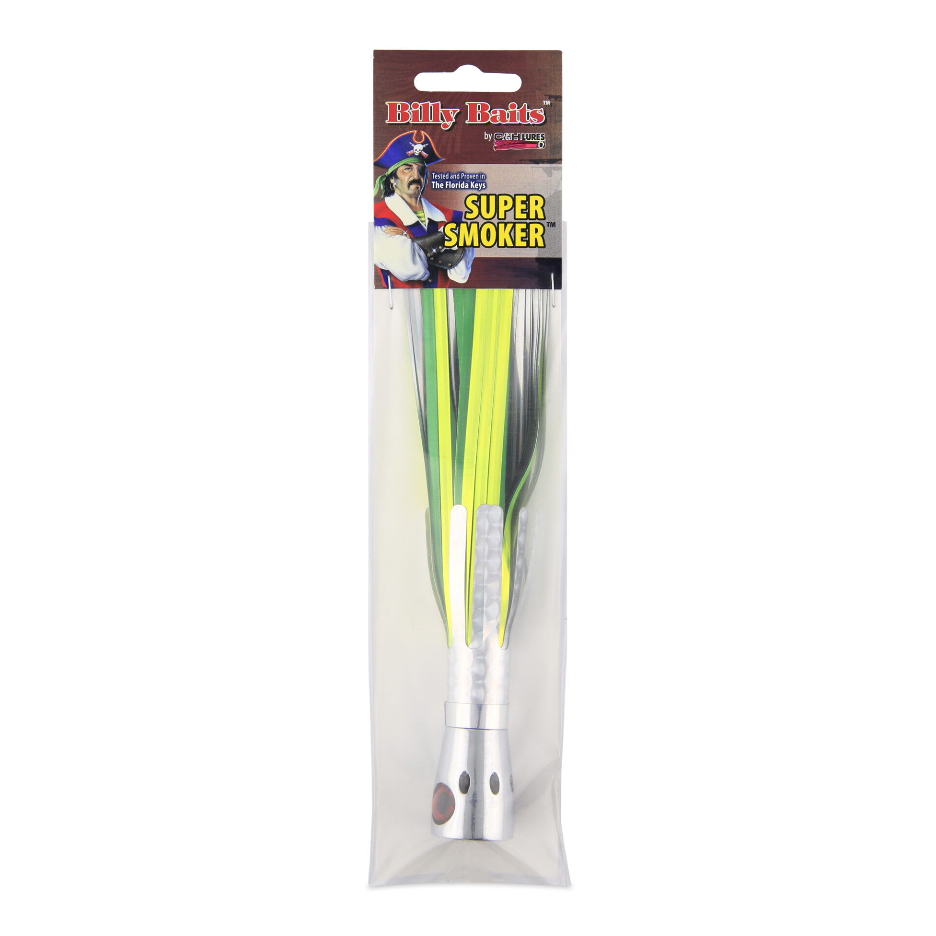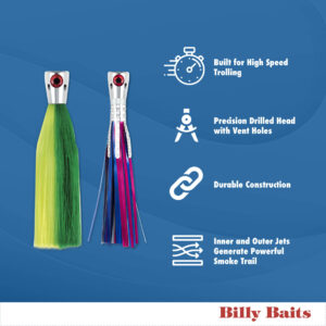 Billy Baits, Super Smoker Lure, Chartreuse/Green Skirt, 2 oz / 56.6 g Head, 8 in / 20.3 cm