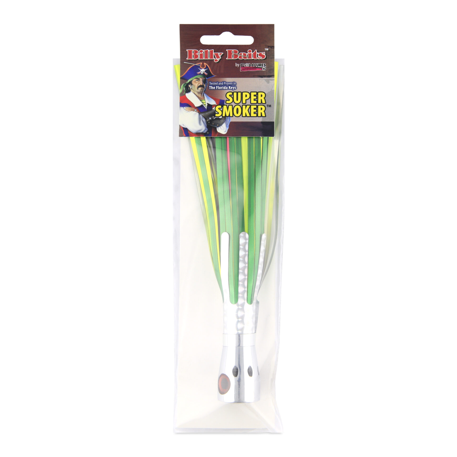 Billy Baits, Super Smoker Lure, Green/Chartreuse/Pink Skirt, 2 oz / 56.6 g Head, 8 in / 20.3 cm