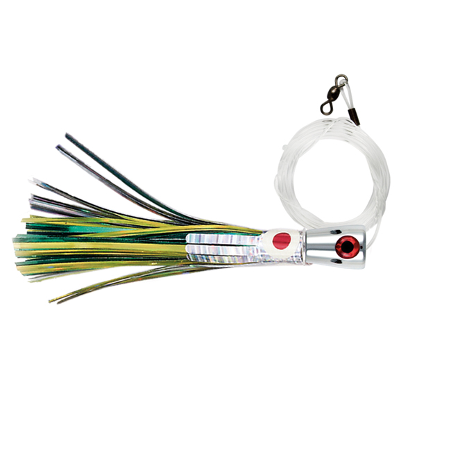 Billy Baits, Super Smoker Lure Rigged & Ready, Chartr/Green Skirt, 2 oz / 56.6 g Head, 7/0 DTSS Mustad Hook, AFW Swivel, 130 lb / 58.9 kg Grand Slam Mono Line, 6 ft / 1.8 mBilly Baits, Super Smoker Lure Rigged & Ready, Chartr/Green Skirt, 2 oz / 56.6 g Head, 7/0 DTSS Mustad Hook, AFW Swivel, 130 lb / 58.9 kg Grand Slam Mono Line, 6 ft / 1.8 m
