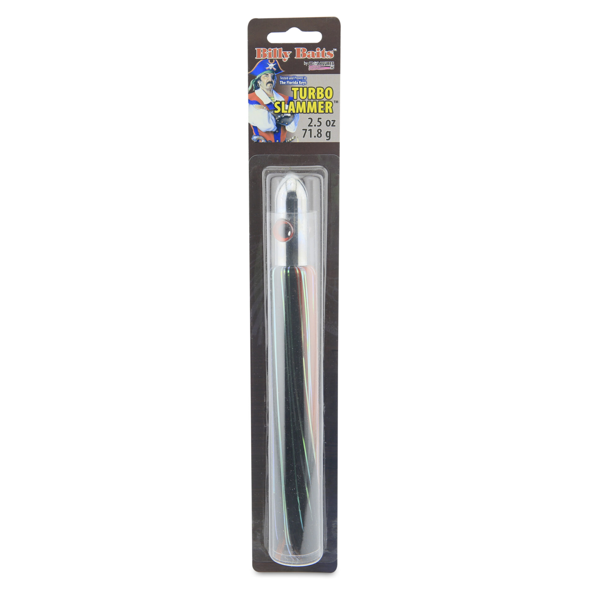 Billy Baits, Turbo Slammer Lure, Medium 1.75 oz / 49.6 g, Chrome Head, Black/Red, Black Flash, 6.75 in / 17.1 cm