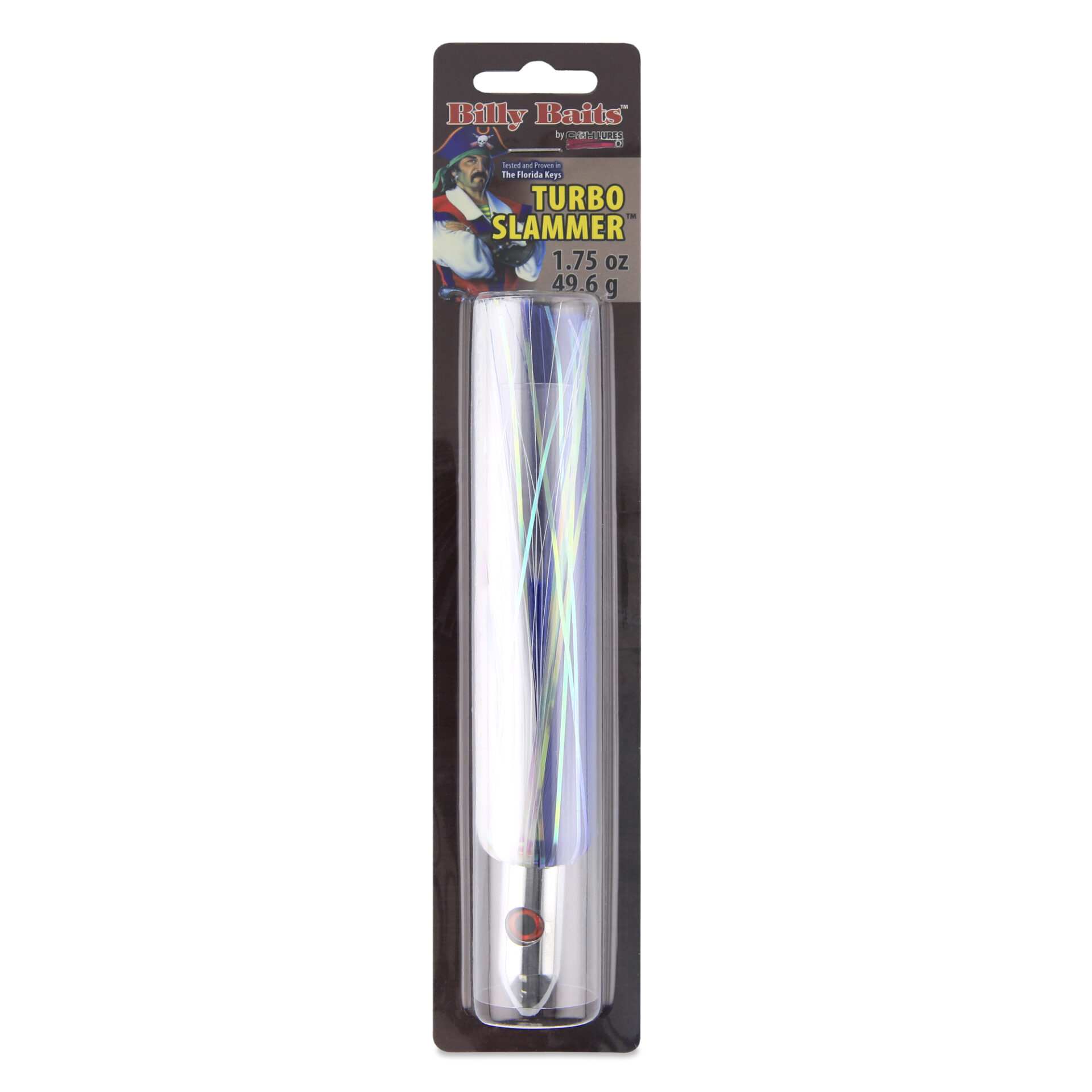 Billy Baits, Turbo Slammer Lure, Medium 1.75 oz / 49.6 g, Chrome Head, Blue/White, Pearl/Crystal Flash, 6.75 in / 17.1 cm