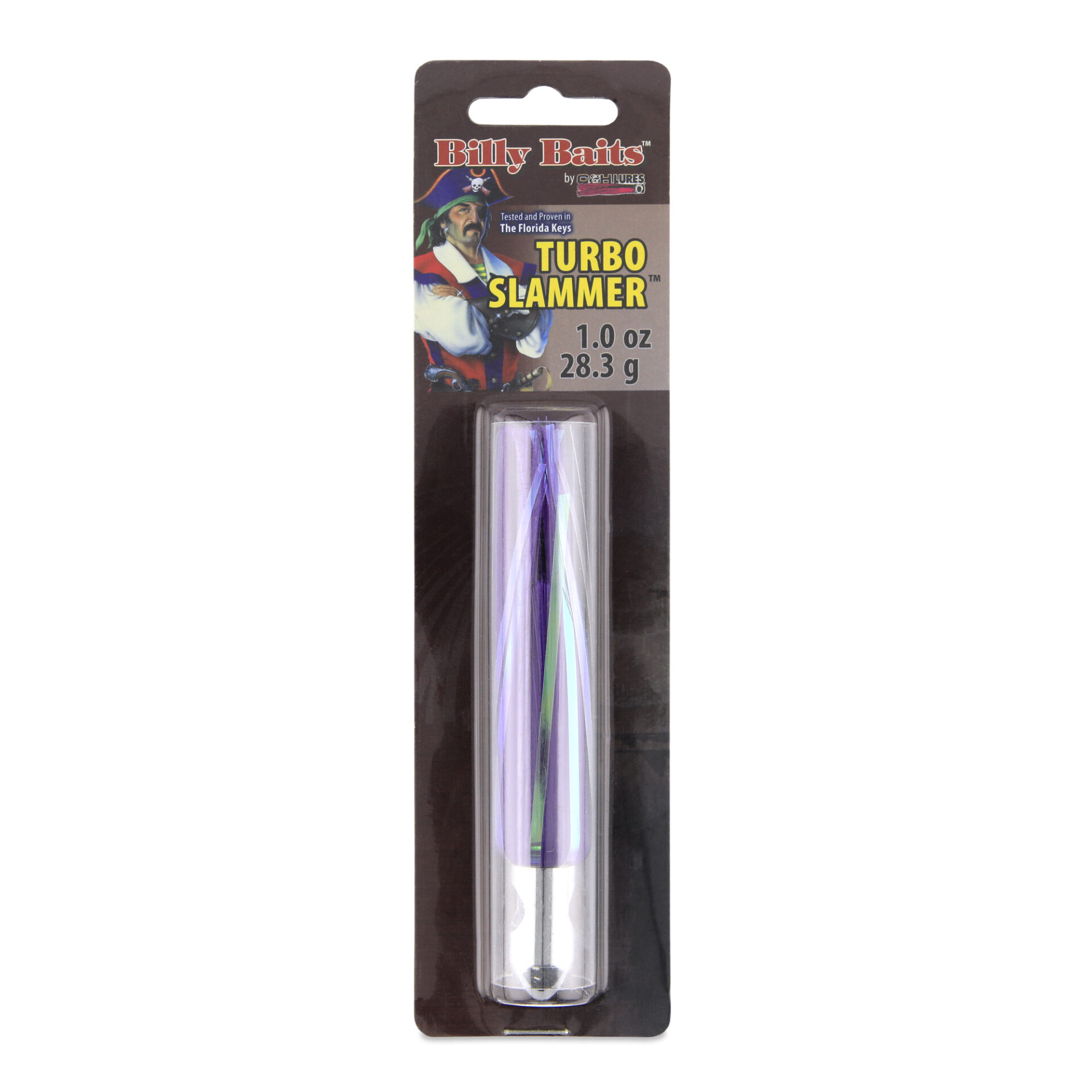 Billy Baits, Turbo Slammer Lure, Small 1 oz / 28.3 g, Chrome Head, Black/Purple, Black Flash, 4.25 in / 10.8 cm